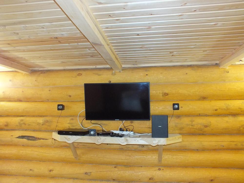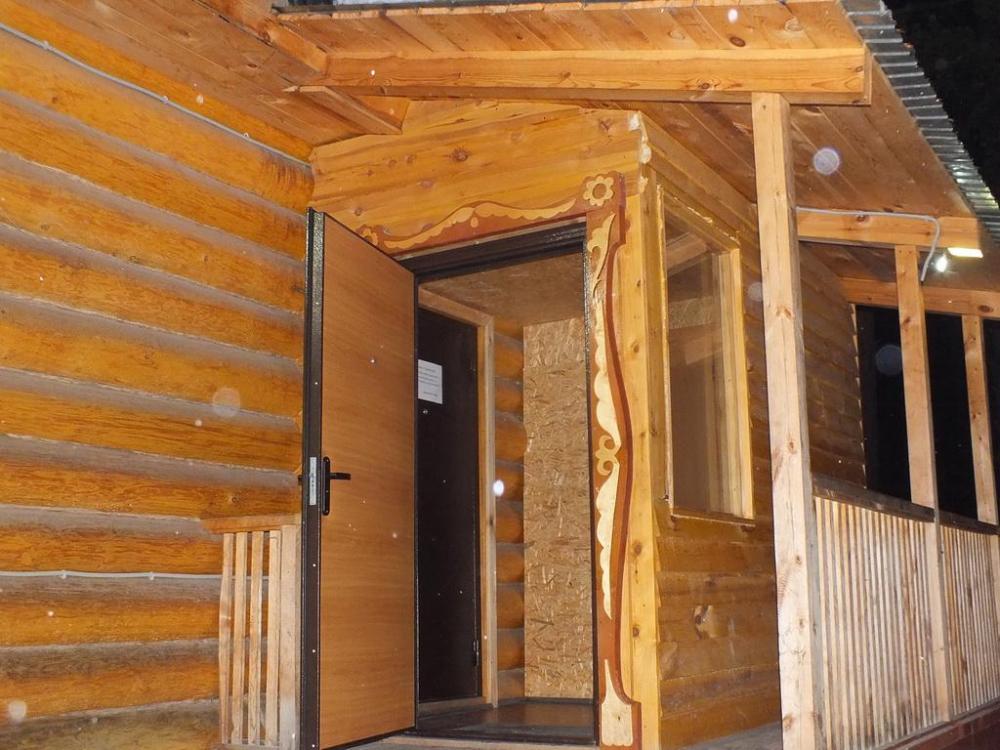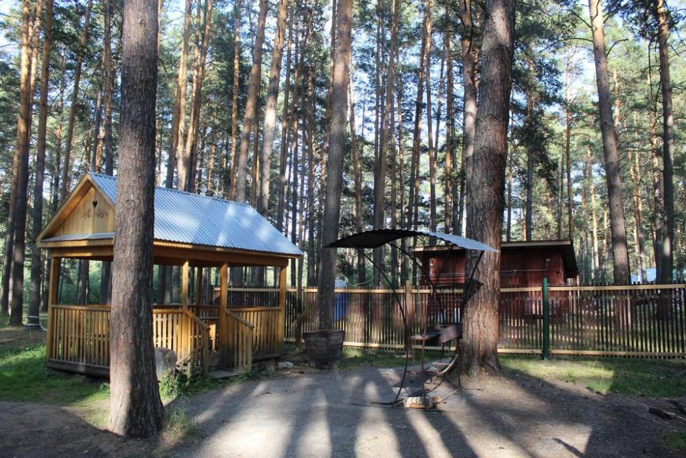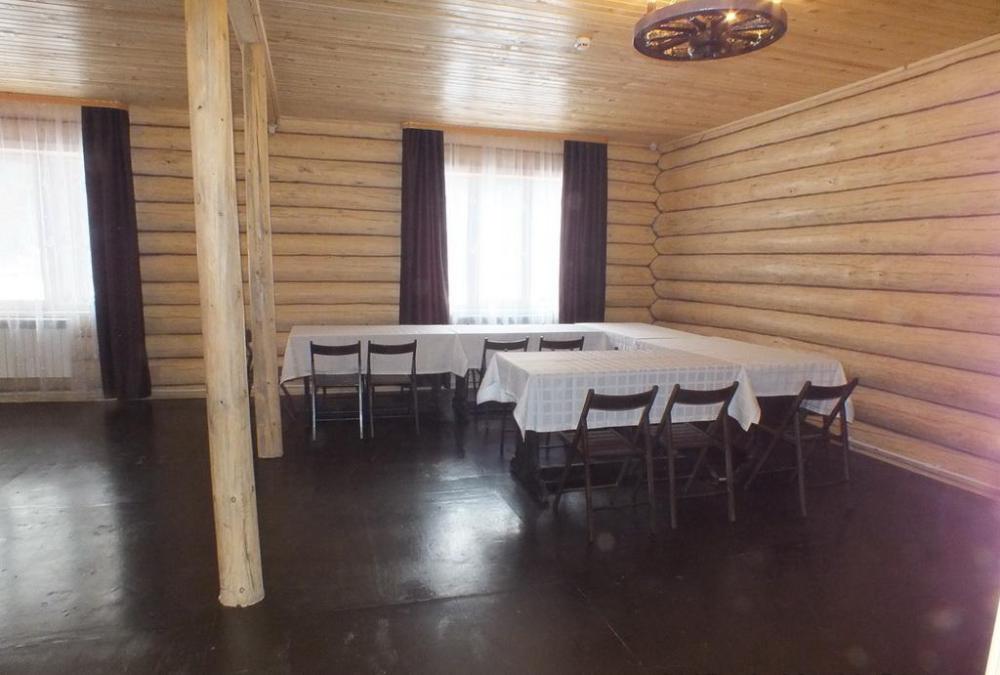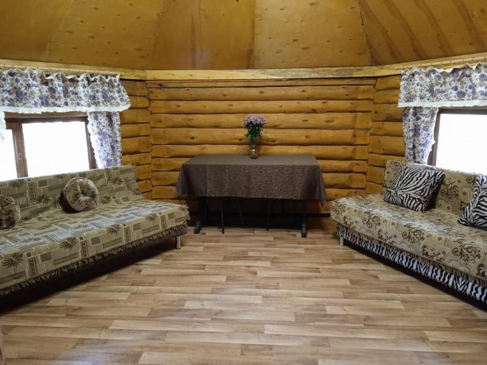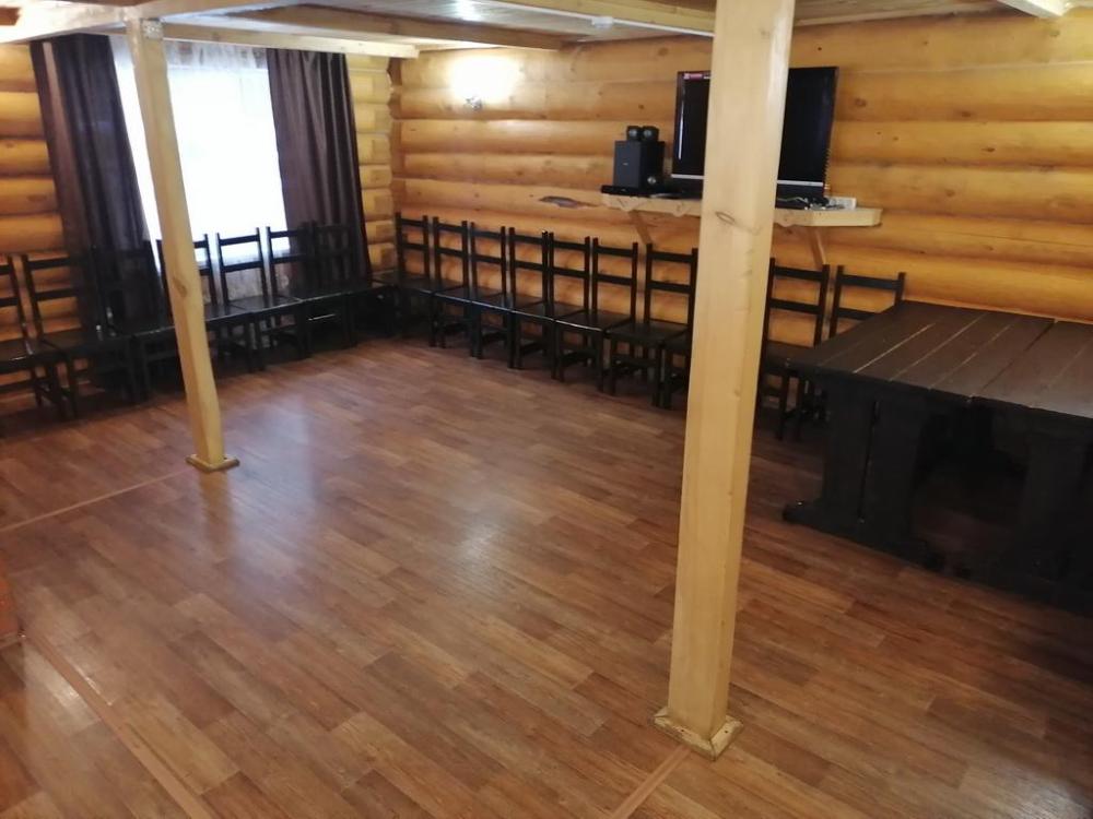 Дом состоит из двух комнат (гостиная и прихожая, объединенная с кухней), оборудован аудиосистемой, туалет и душевая кабина, имеется СВЧ-печь, электрочайник, электроплита, холодильник.Имеется печь, что позволяет даже в мороз поддерживать комфортную температуру. Беседка на 15 мест с мангальной зоной