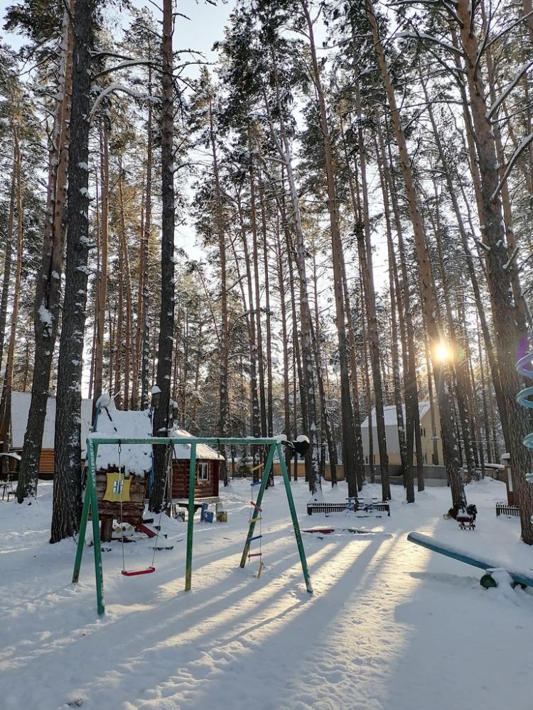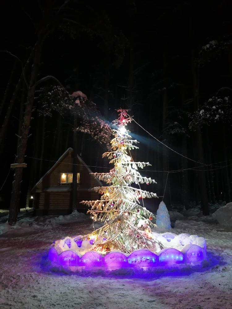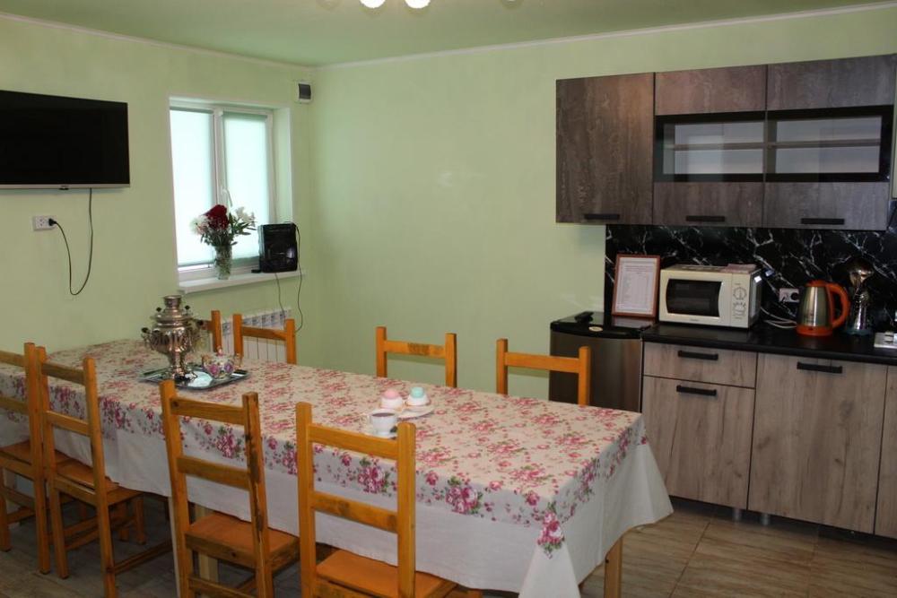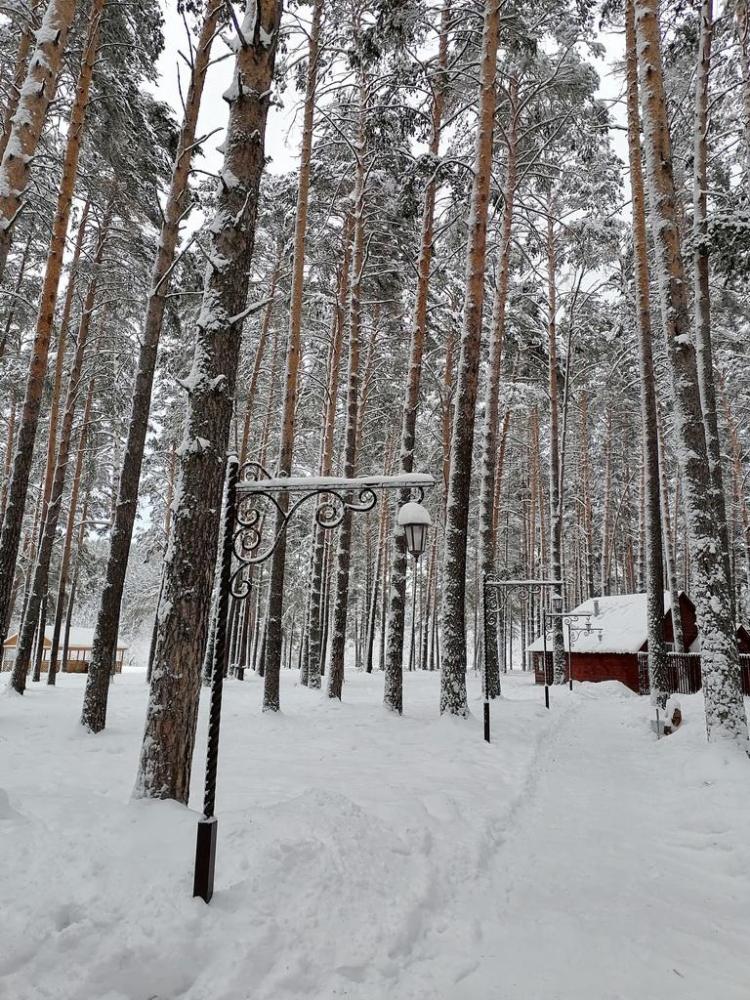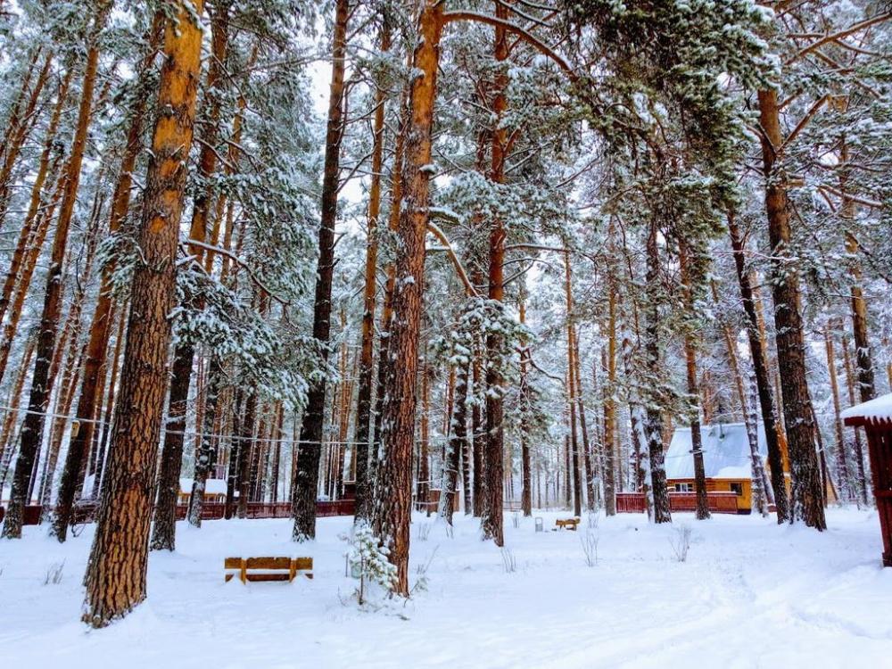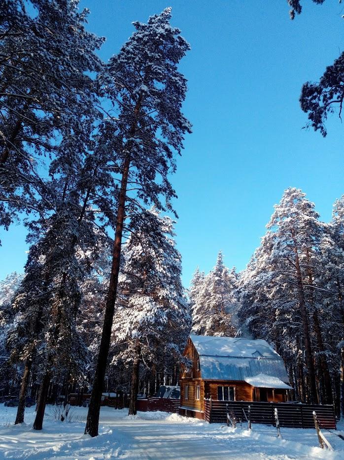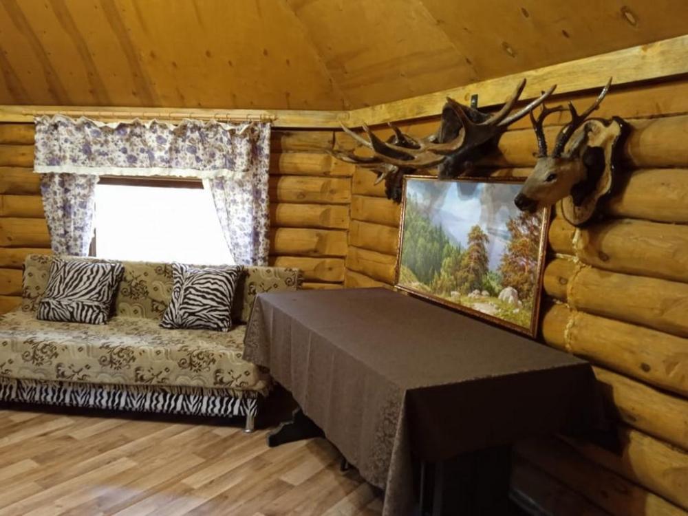 Дом состоит из двух комнат (гостиная и прихожая, объединенная с кухней), оборудован аудиосистемой, туалет и душевая кабина, имеется СВЧ-печь, электрочайник, электроплита, холодильник.Имеется печь, что позволяет даже в мороз поддерживать комфортную температуру. Беседка на 15 мест с мангальной зоной