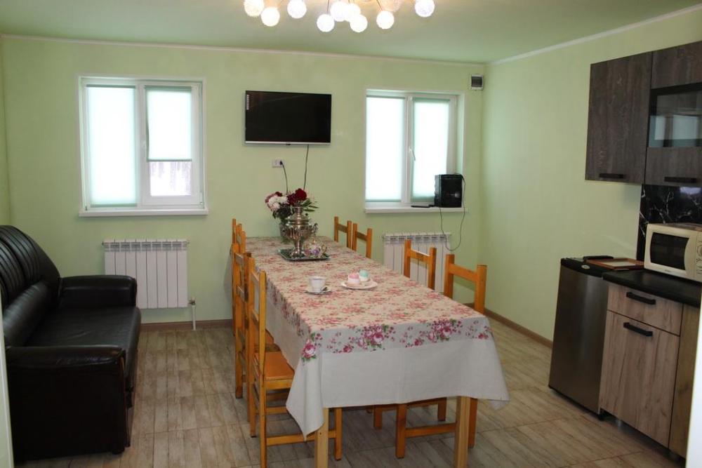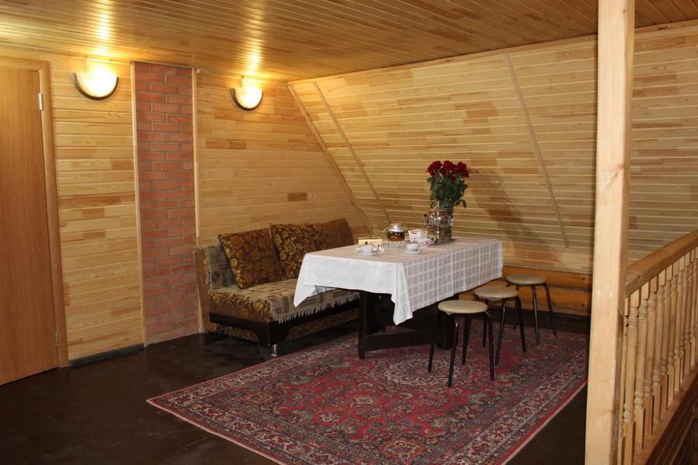 На первом этаже просторная гостиная, которую также можно использовать в качестве банкетного зала на 20 персон.Оснащен аудиосистемой и ТВ (спутниковое телевидение). Деревянная мебель, кухня с электроплитой, холодильником, СВЧ, электрочайником, мультиваркой и необходимым набором посуды. Санузел с душевой кабиной. На втором этаже две раздельные спальни с мебелью. Прилегающий участок огорожен заборчиком, имеется мангальная зона.