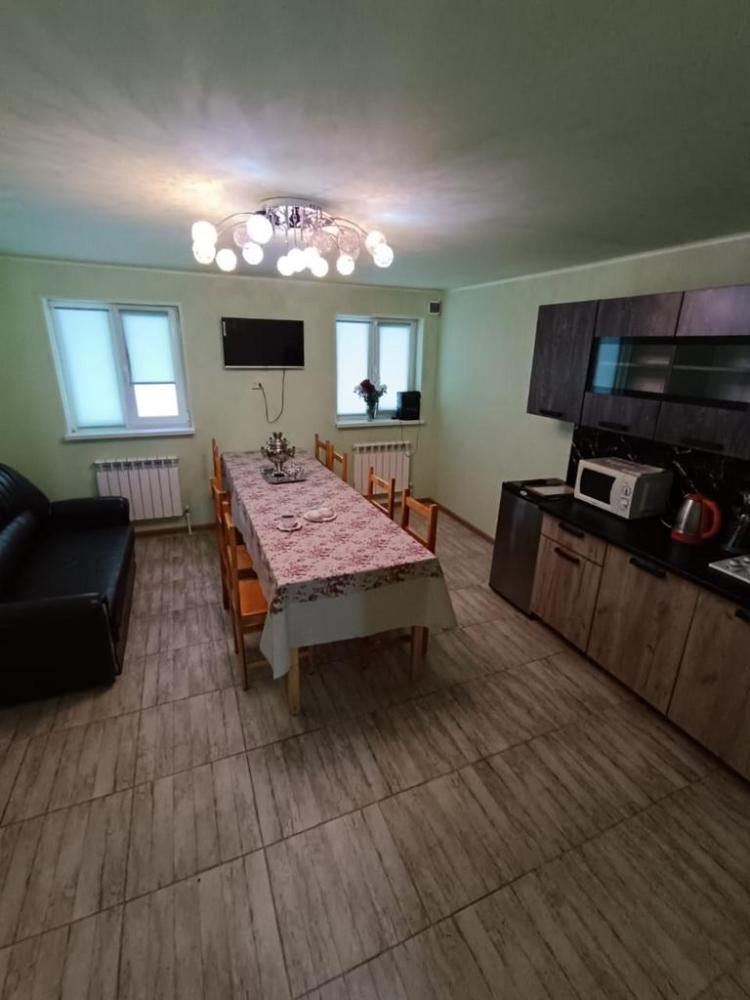 На первом этаже просторная гостиная .Оснащен аудиосистемой и ТВ (спутниковое телевидение). Кухня с электроплитой, холодильником, СВЧ, электрочайником, мультиваркой и необходимым набором посуды. Санузел с душевой кабиной. На втором этаже две раздельные спальни с мебелью. Прилегающий участок огорожен заборчиком, имеется мангальная зона.