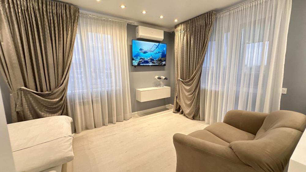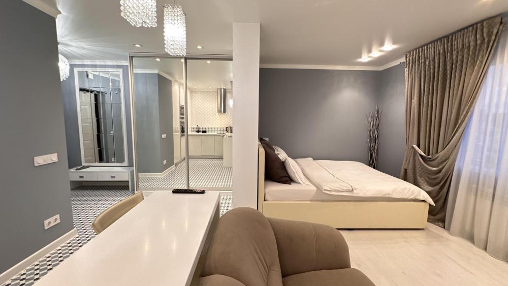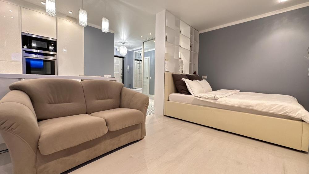 Современная квартира-студия с дизайнерским ремонтом в центре г.Бердска на 11 этаже с прекрасным видом на города. Квартира-студия высокой комфортности расположена в новом жилом комплексе «Центральный». Идеально подойдет для пары, семьи, решившей отдохнуть в нашем городе, либо для командированных сотрудников. В квартире есть: кондиционер, посудомоечная машина. Двуспальная кровать с ортопедическим матрасом (160х200), диван-кровать (120х190). Кухня со встроенной бытовой техникой (холодильник, духовка, СВЧ, варочная панель) чайник, а так же посуда и приборы. Фен, утюг, гладильная доска. Smart TV (онлайн-кинотеатры, VK-видео), Wi-Fi. Шампунь, гель для душа, жидкое мыло, зубные наборы, тапочки.. Чай,сахар, соль, масло В шаговой доступности Пятерочка, Лента, Ярче, аптеки, банки. Через дорогу остановка маршрутных такси до Новосибирска. Рядом с домом ресторанная жизнь города: Sunrise, Clever, Куликовский, Хочу хинкал! , Вилка-Ложка. Ближайший пляж в 2 км от дома (5 мин на ?), остальные пляжи не более 15-20 мин езды. 10 минут пешком до СК «Вега», 10 минут на автомобиле до ж/д Вокзала, 90 минут на автомобиле до аэропорта Толмачево