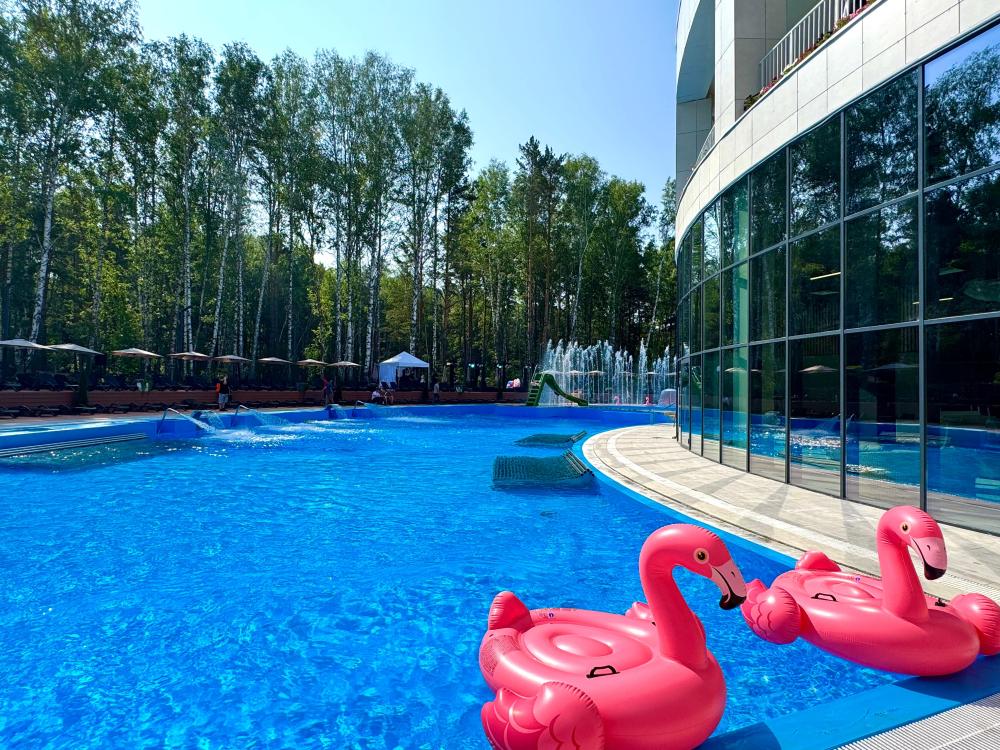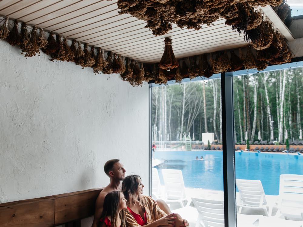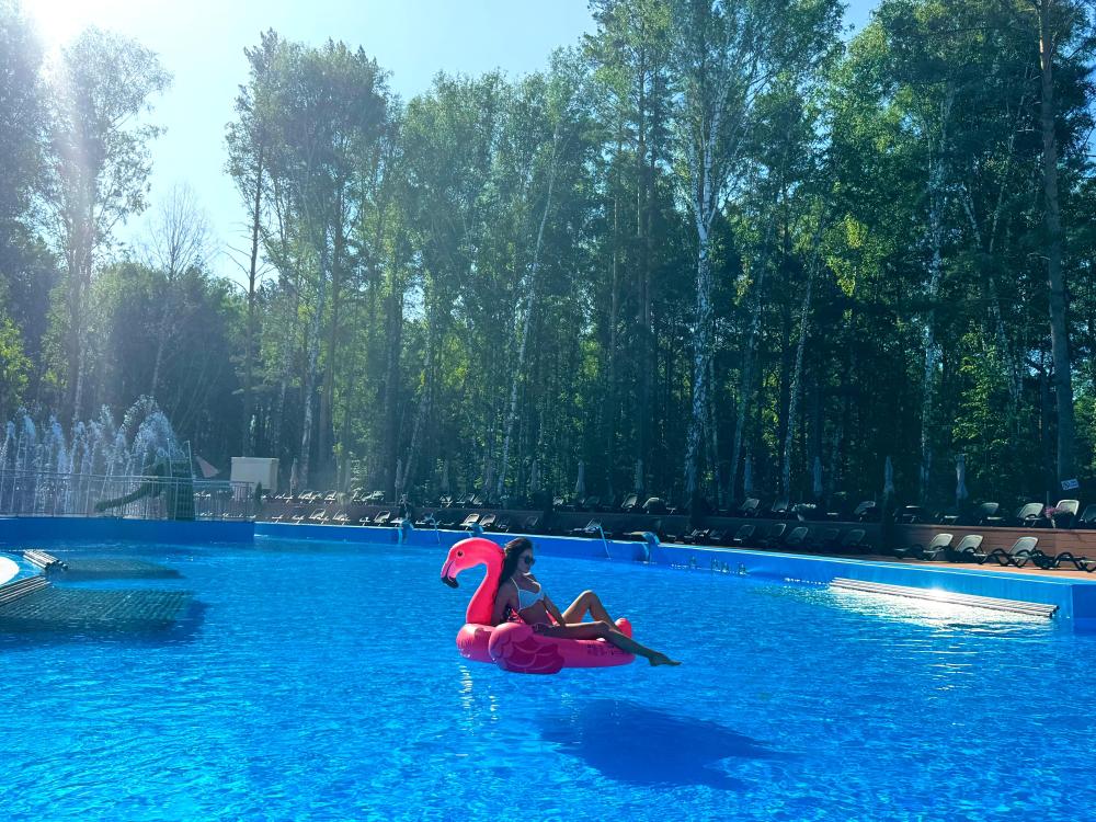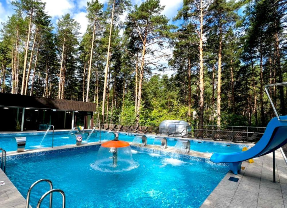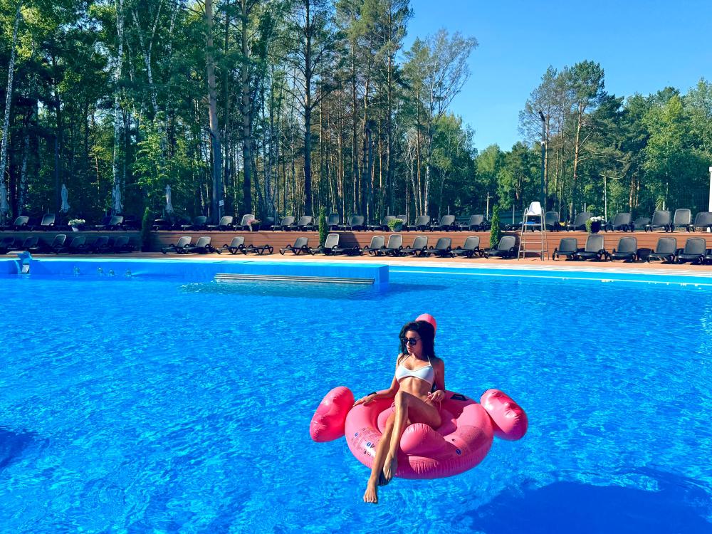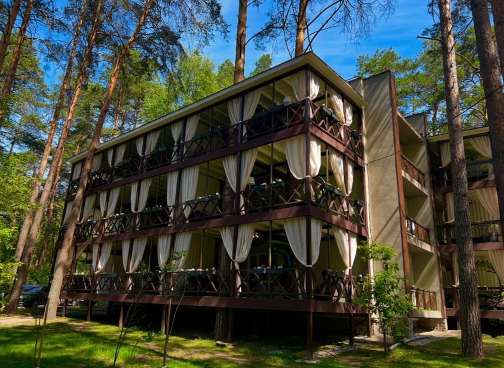 Однокомнатный номер с двуспальной кроватью, холодильник, кресло/диванчик, журнальный столик, санузел с душевой кабиной и всеми необходимыми принадлежностями (фен, зубной набор, гель для душа, шампунь, тапочки), чайник, набор посуды, просторный балкон с видом на лес.