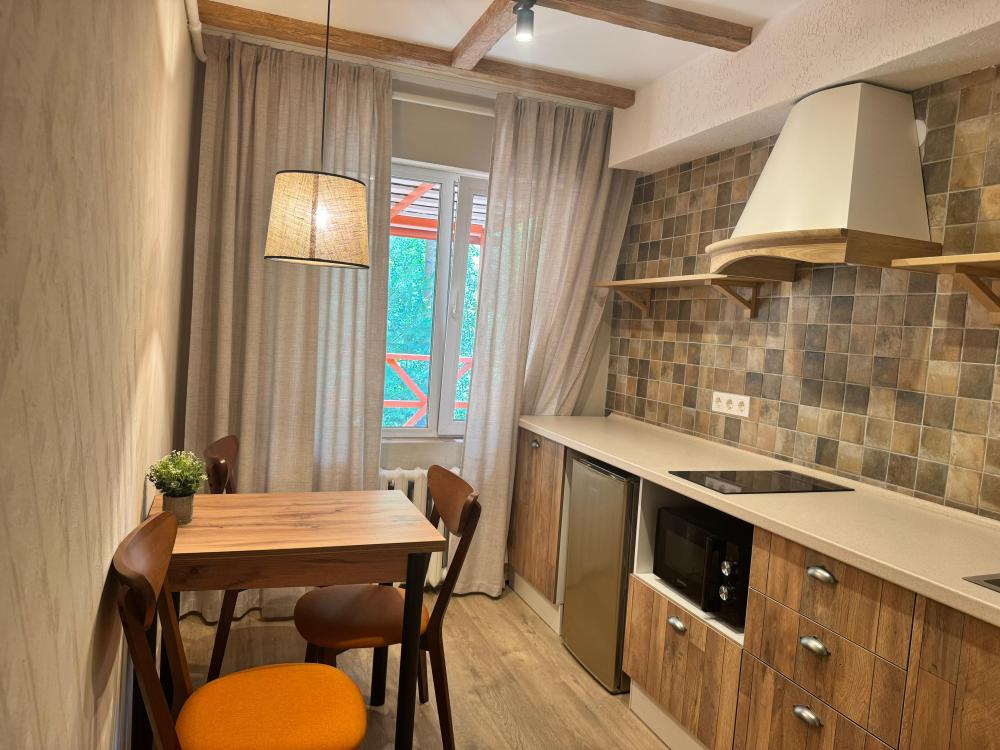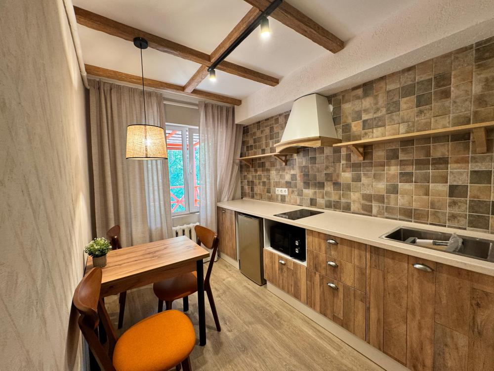 1 ком. номер с кухней, 1большая кровать, телевизор, сан узел с душем.