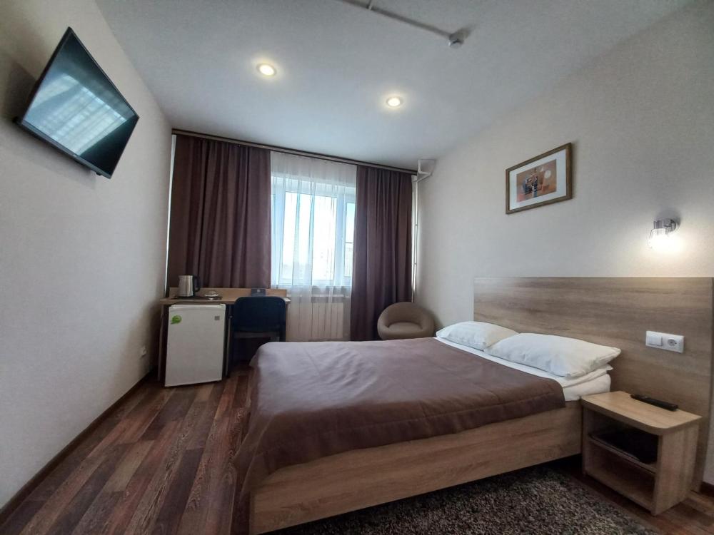 Двухместный номер, площадь номера 16 кв.м. Комната, прихожая, туалет + душ, две стандартные одноместные кровати, письменный стол, телевизор, прикроватные тумбочки, кресла.