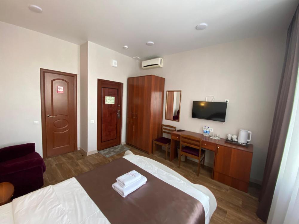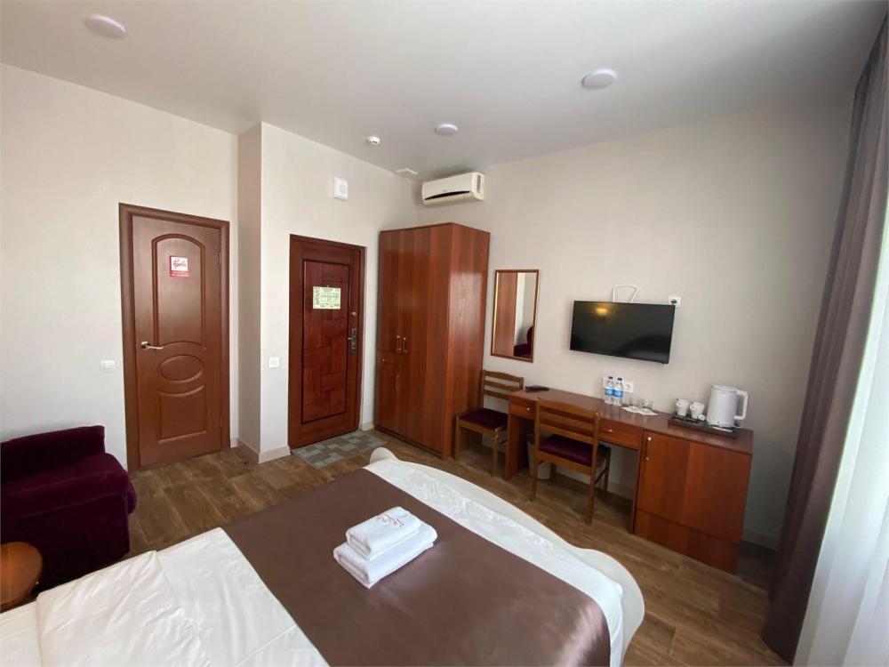 Стандарт Комфорт с дополнительным местом. Просторная двуспальная кровать и удобное раскладное кресло-кровать, полноценная ванная комната с душем