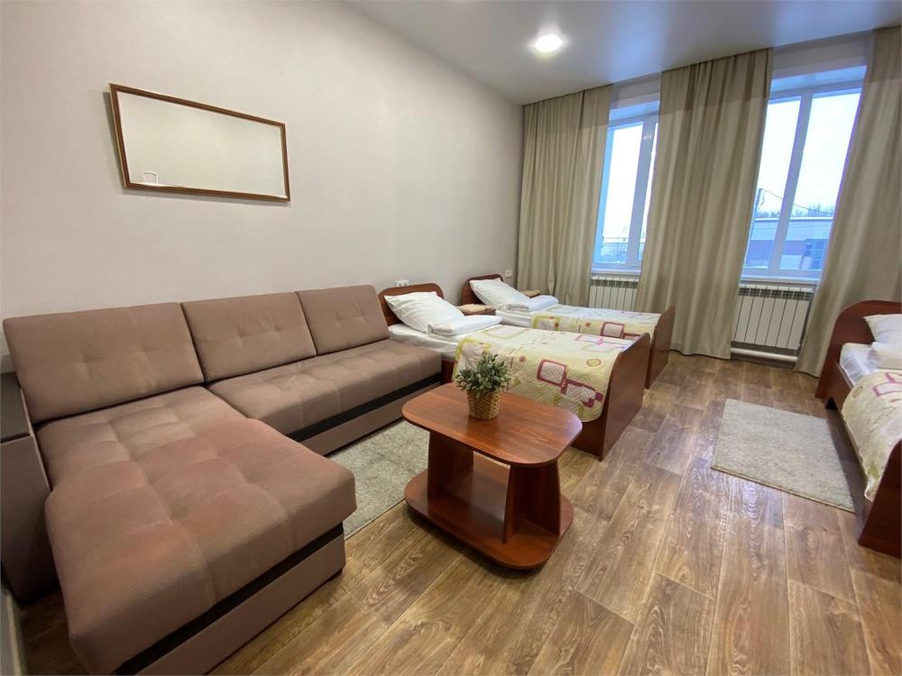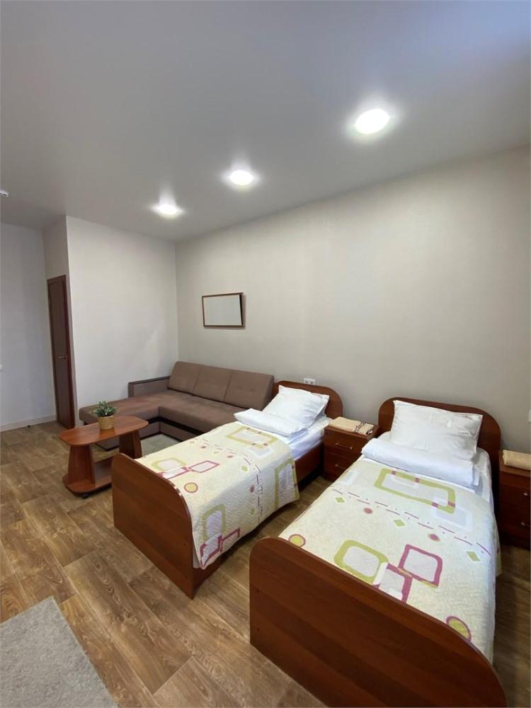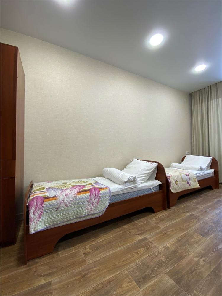 Просторный номер на 3–5 человек. В номере : три раздельные кровати и удобный диван-кровать. В номере есть собственный санузел, а общий душ располагается на этаже