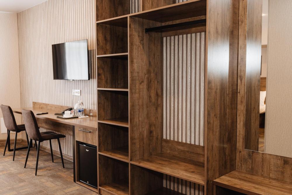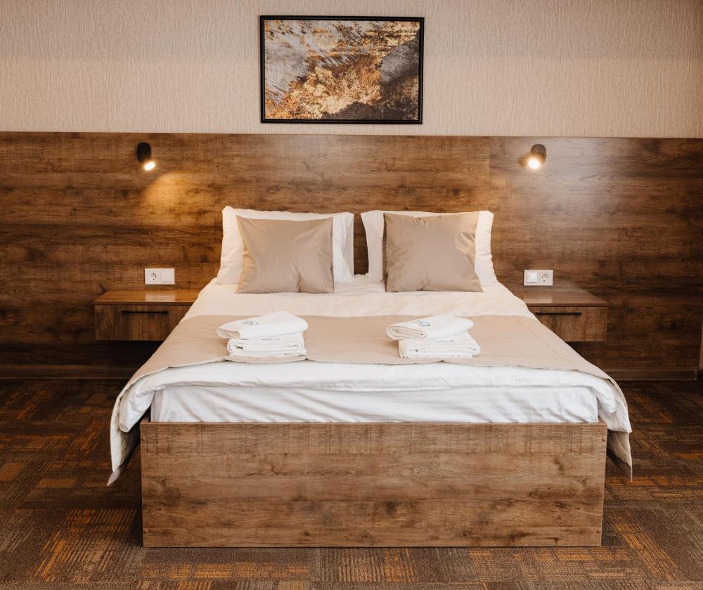 Стандартный номер с двуспальной кроватью, Площадь номера – 15 м². Кровать оснащена ортопедическим матрасом, шторы black-out из светонепроницаемого материала создадут в номере уютный полумрак. Сигнал Wi-Fi достаточно мощный для загрузки программ или просмотра фильмов онлайн на плазменном 32 дюймовом телевизоре. Централизованная система кондиционирования отеля поддерживает комфортную температуру в номерах круглый год.