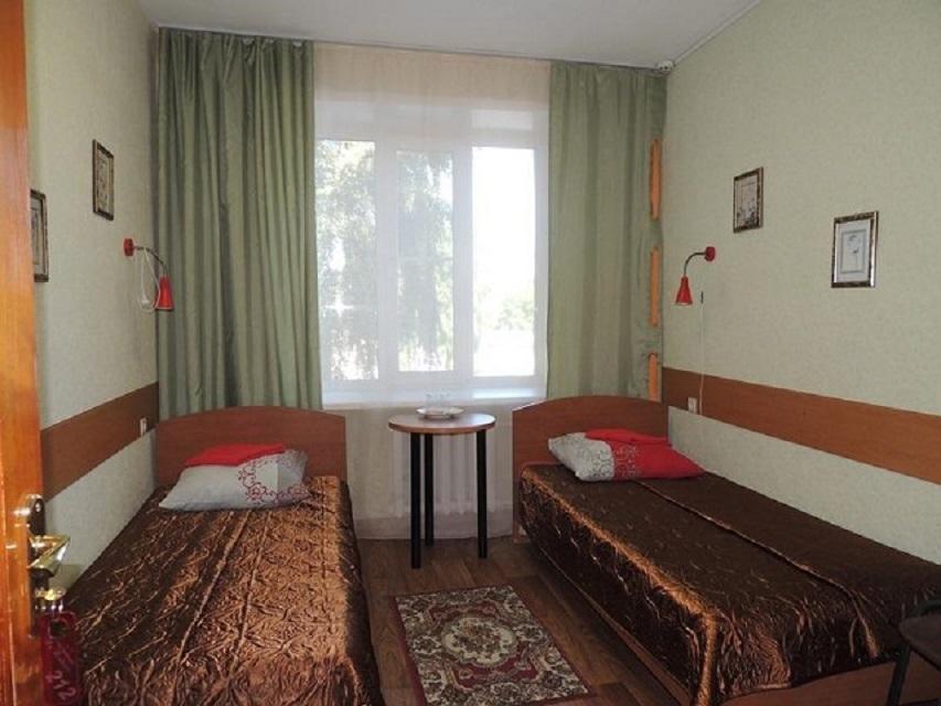 В номере: две односпальные кровати кабельное телевидение, санузел.
