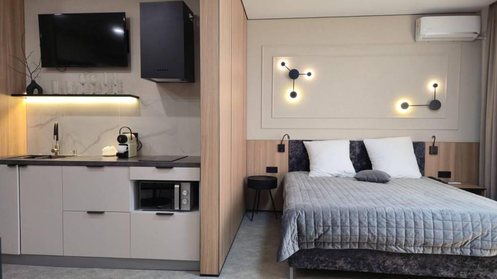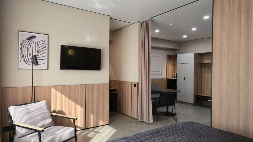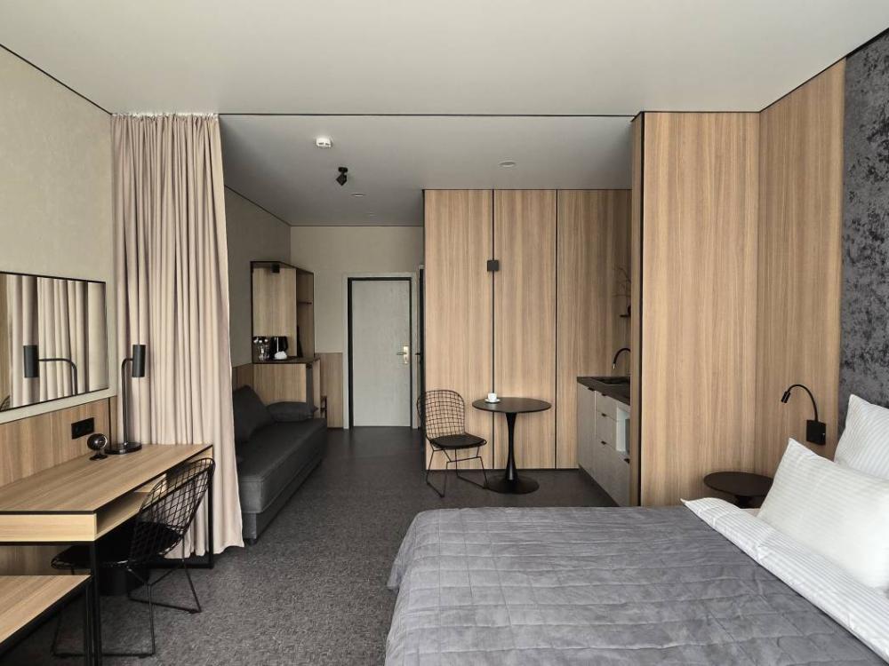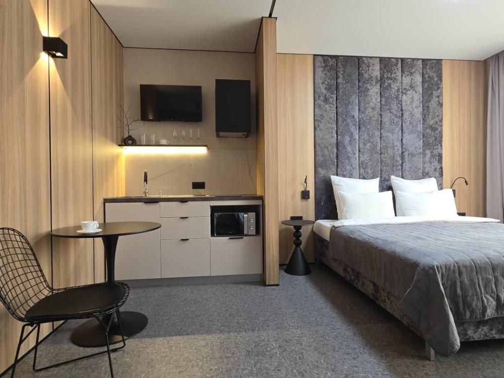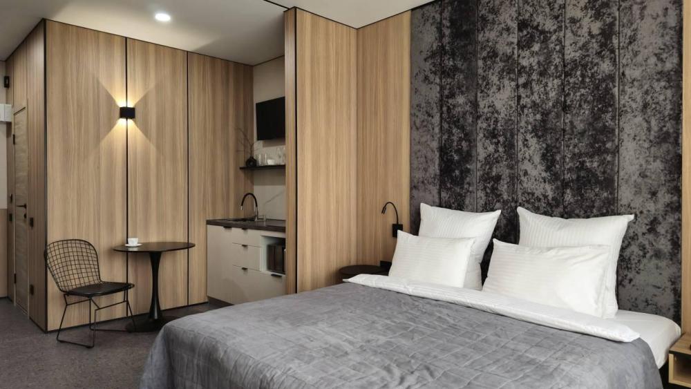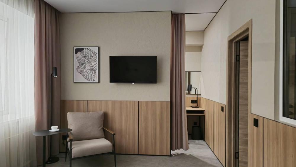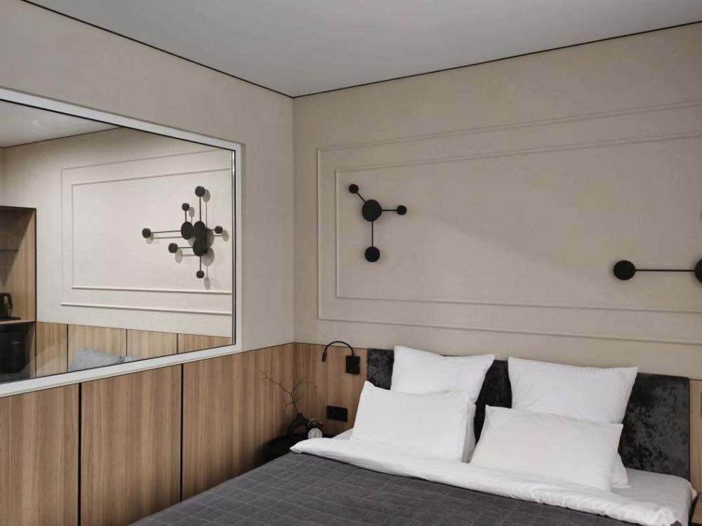 Представительские номера Джуниор сюит с двуспальной кроватью, оснащенные всем необходимым для комфортного отдыха и плодотворной работы.