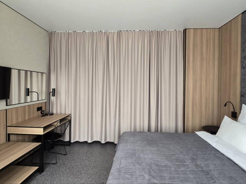 Современный и уютный номер с одной двуспальной кроватью, предназначенный для размещения одного или двух человек. Площадь номеров: 21 кв. м. Номер расположен на 1 этаже с видом во двор и с видом на парк.