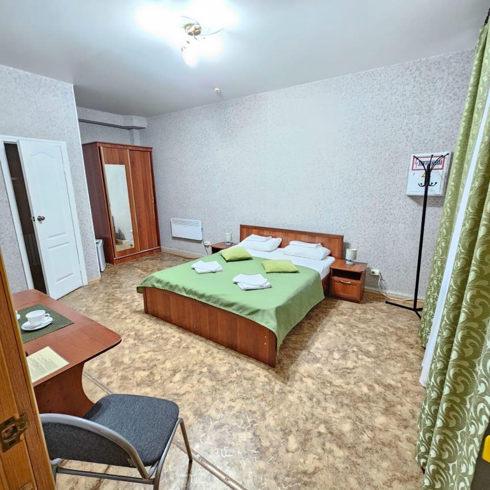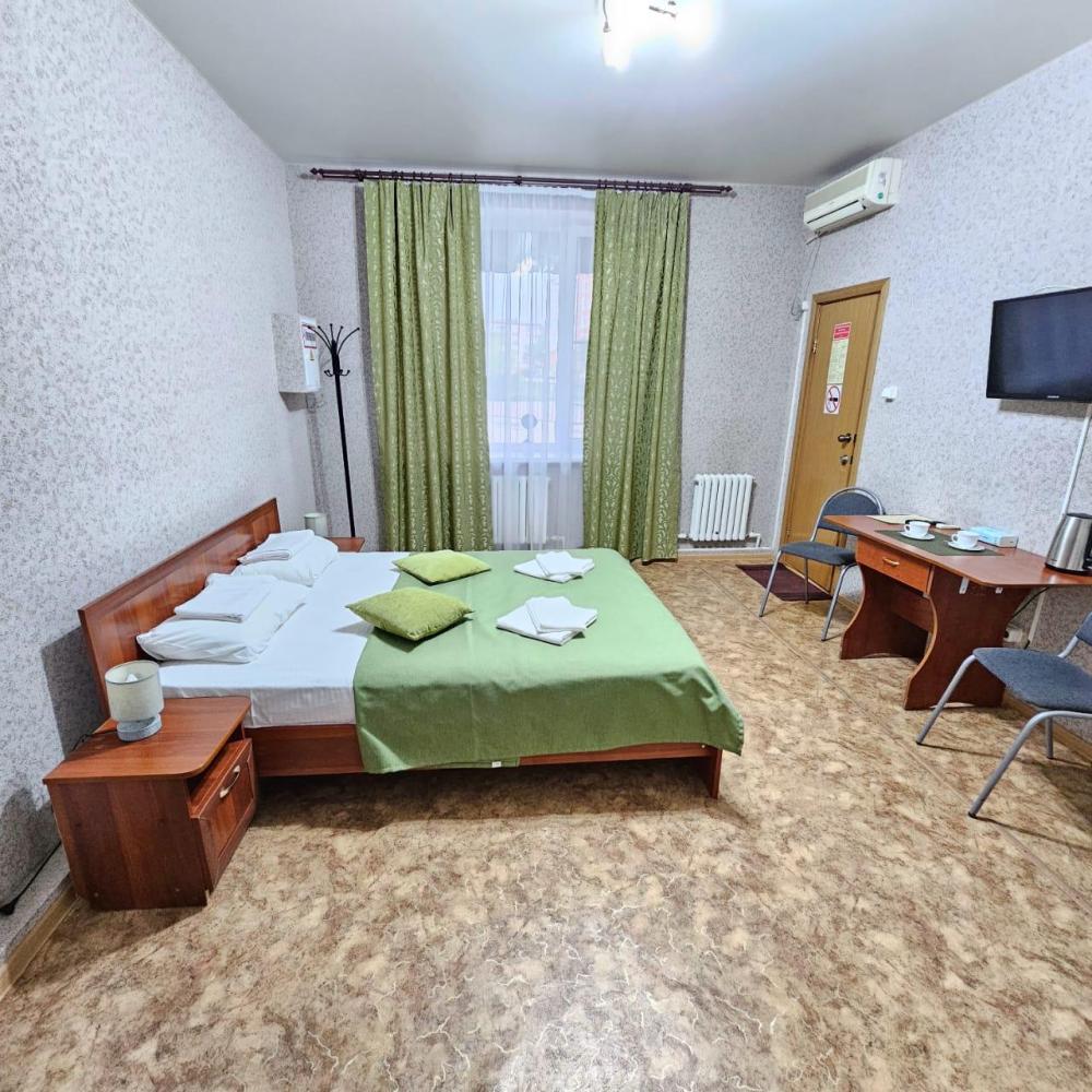 Двухместный номер с одной двуспальной кроватью, душ туалет в номере, кондиционер, чайник холодильник телевизор, кабельное телевидение . 1 или 2 этаж . свежее постельное белье полотенца. В душевой шампунь, гель для душа, зуб. щетки. Тапочки по запросу.