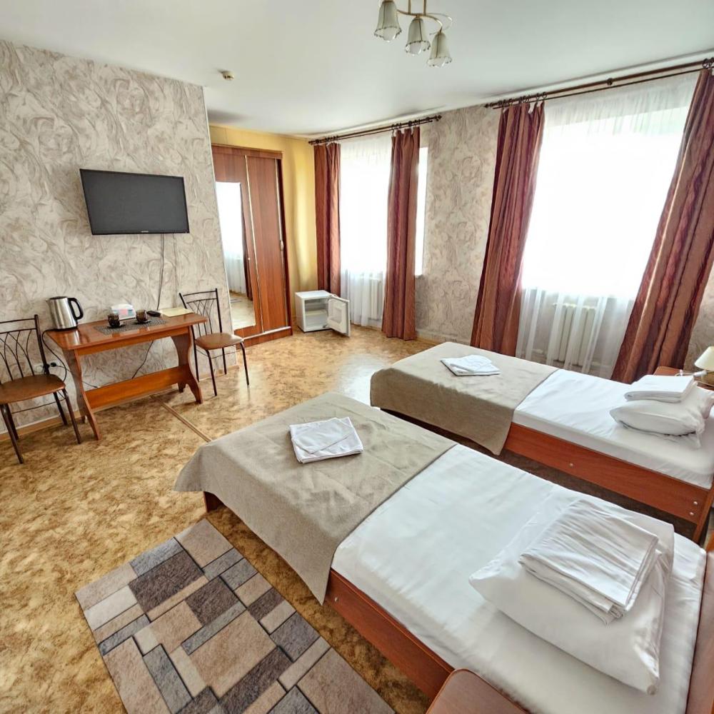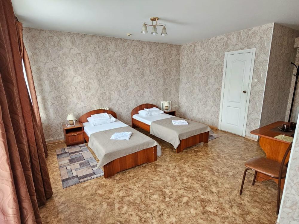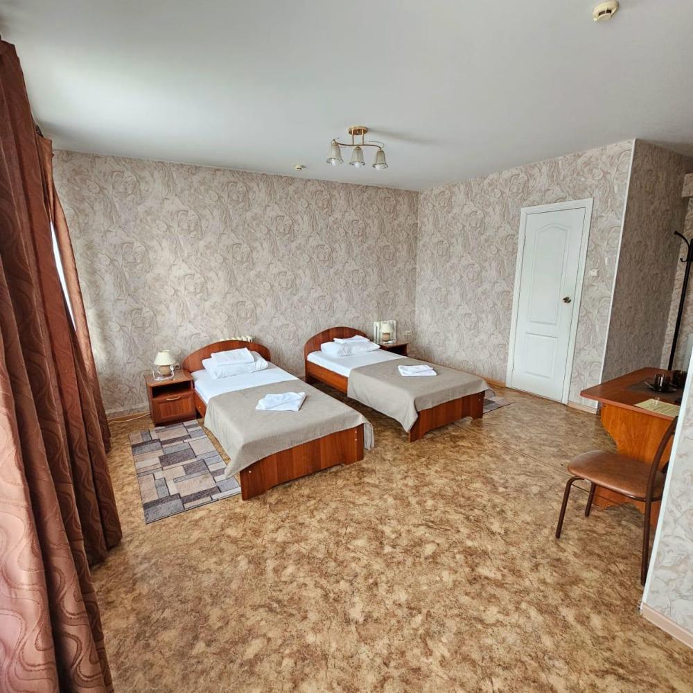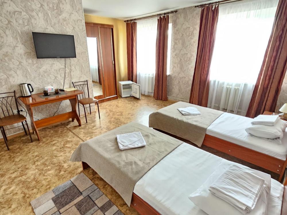 Двухместный номер с двумя раздельными кроватями, душ туалет в номере, кондиционер, чайник холодильник телевизор, кабельное телевидение.