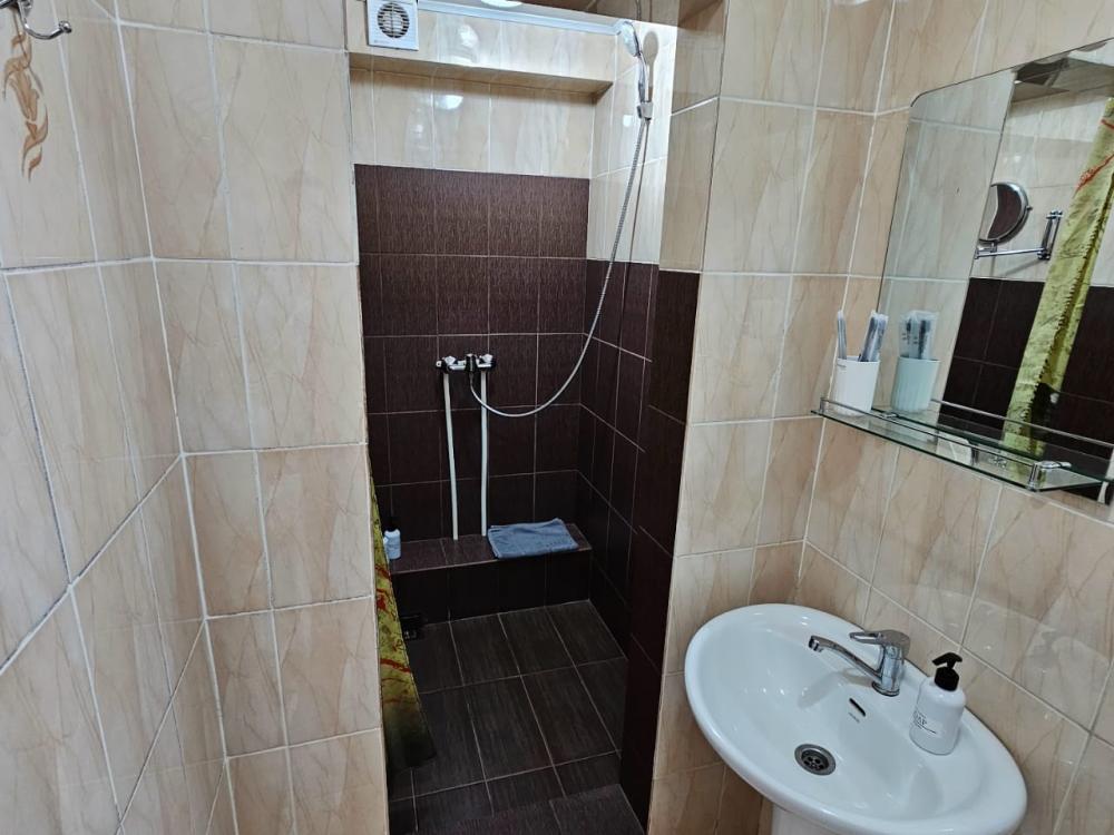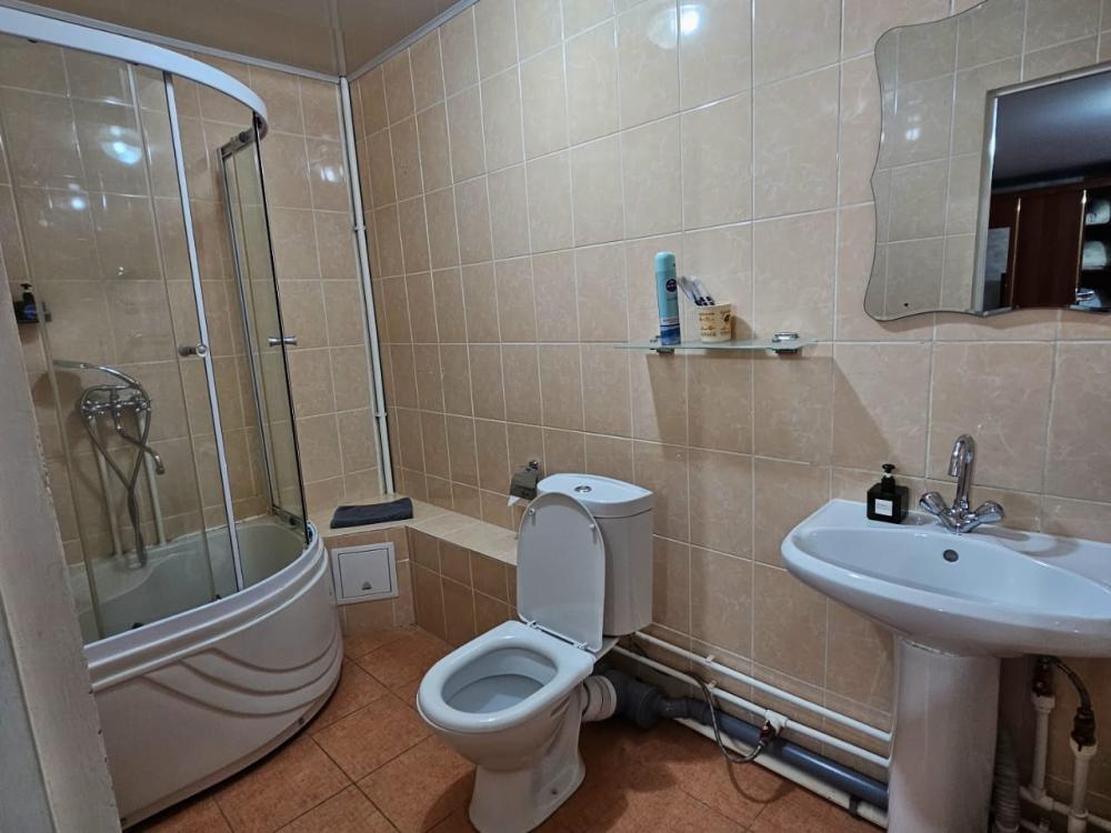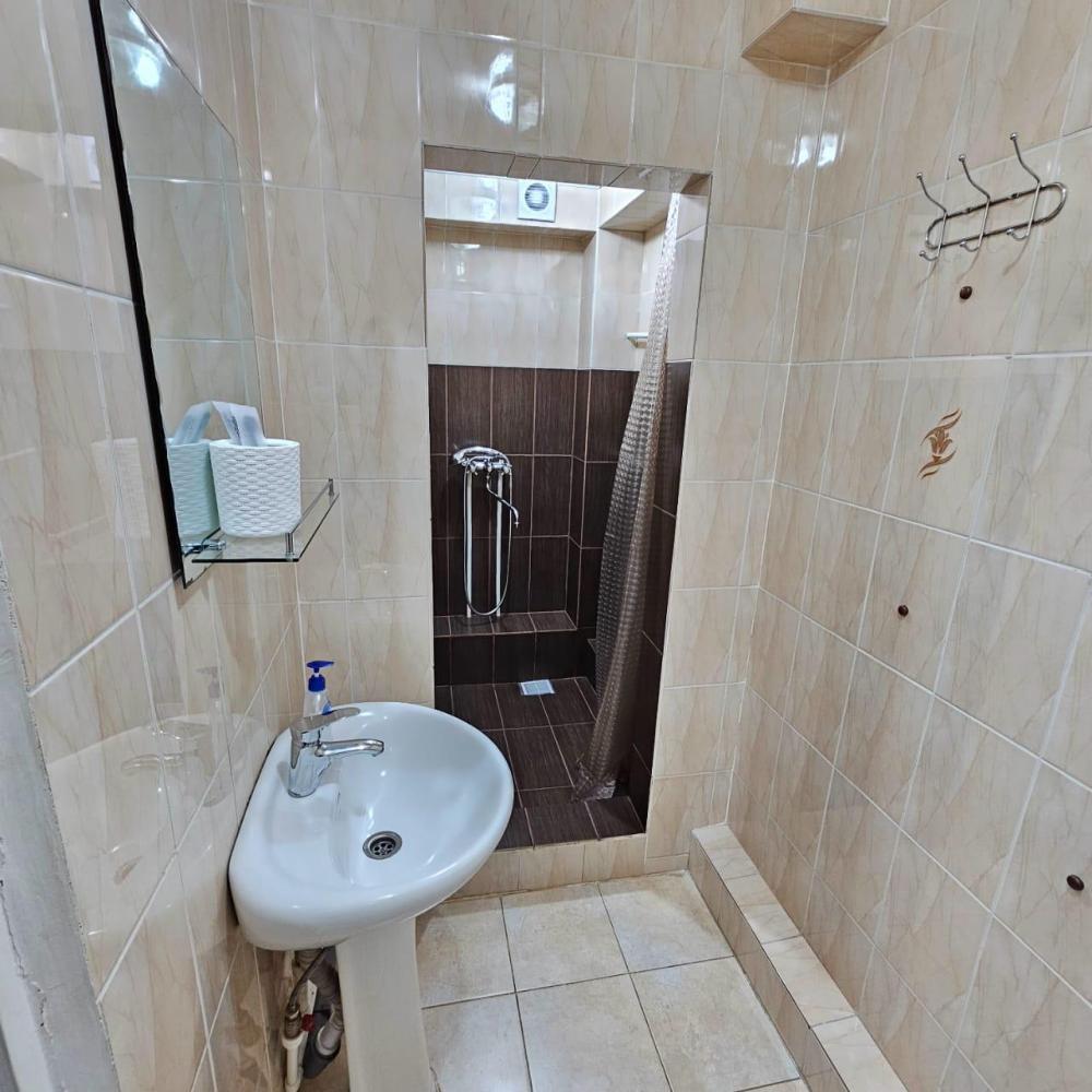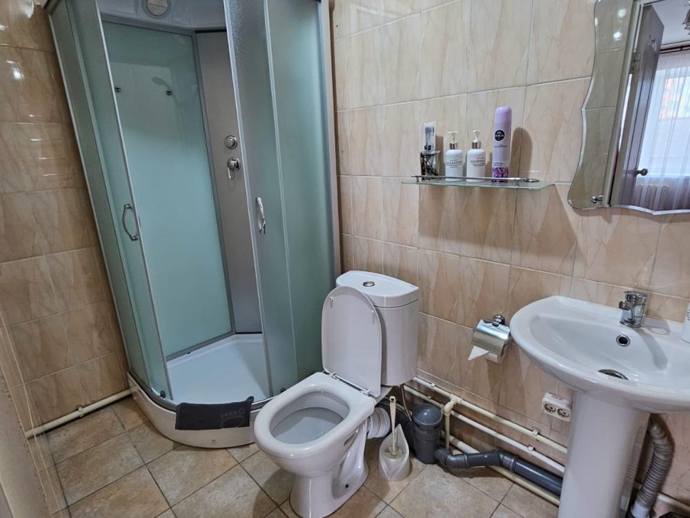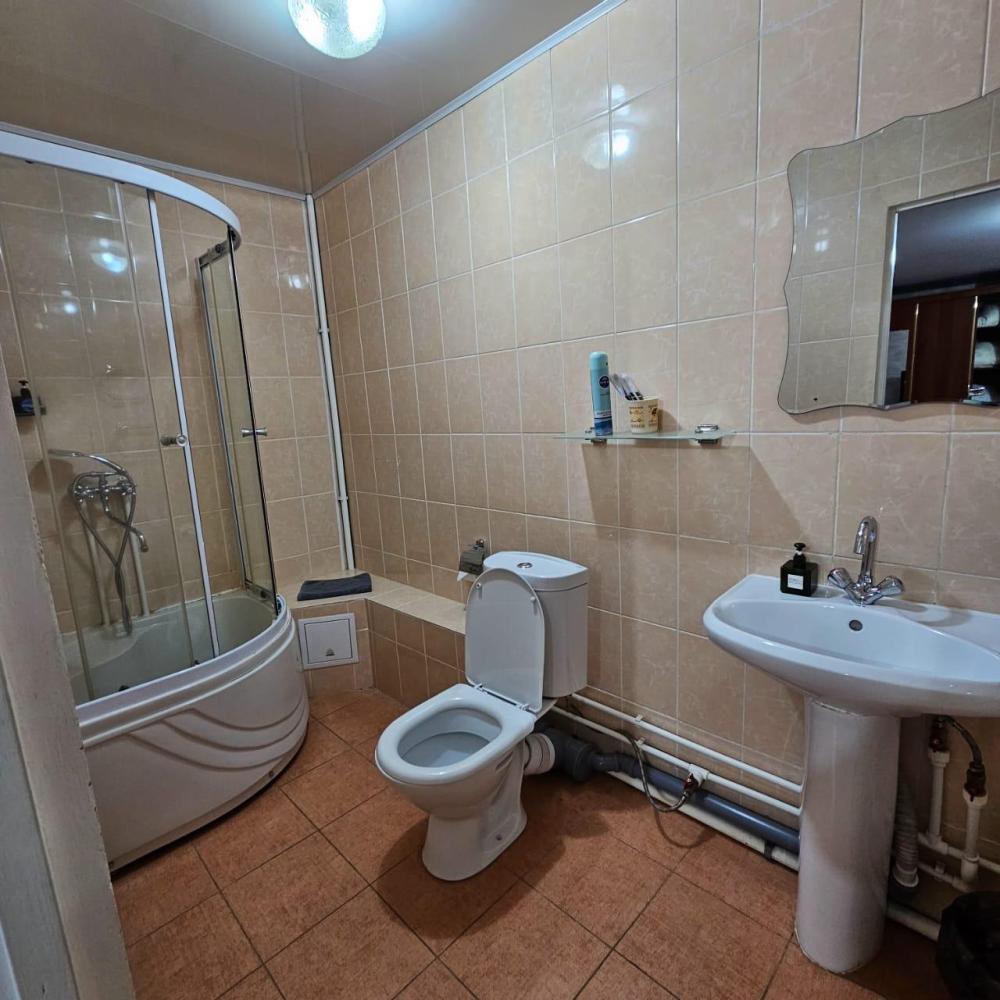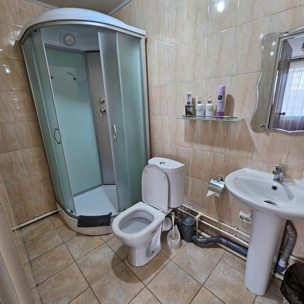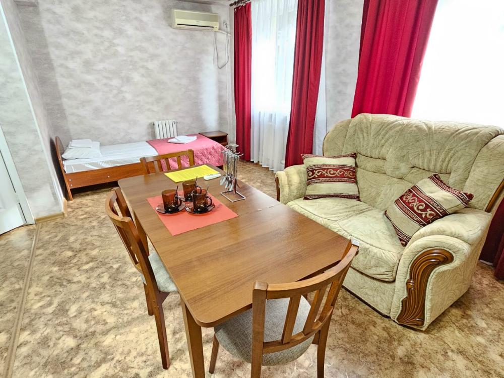 Трехместный номер с одной двуспальной кроватью и одной односпальной, душ туалет в номере , кондиционер, чайник холодильник телевизор , кабельное телевидение. Номер расположен на 2 этаже. свежее постельное белье полотенца. В душевой шампунь, гель для душа, зуб щетки. Тапочки по запросу.
