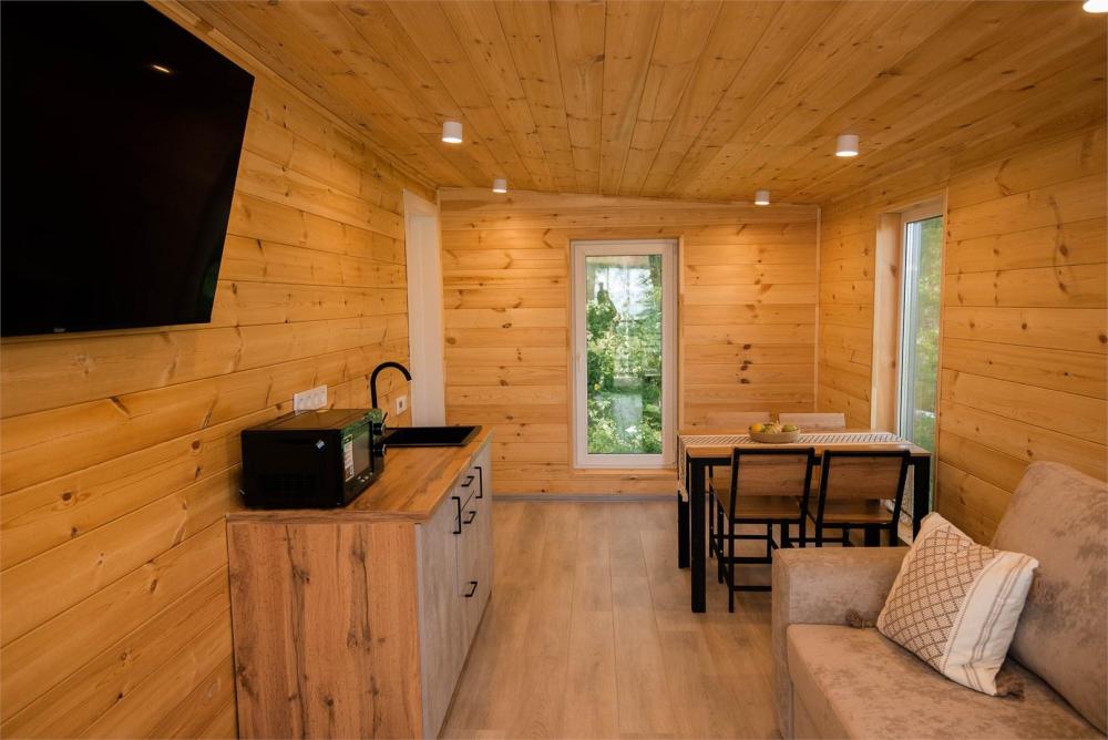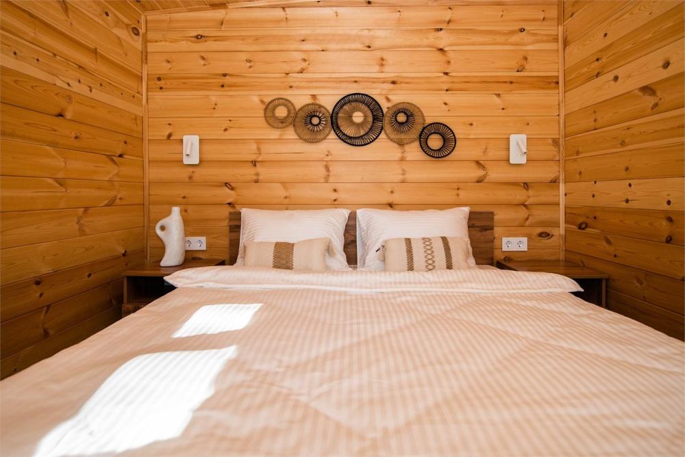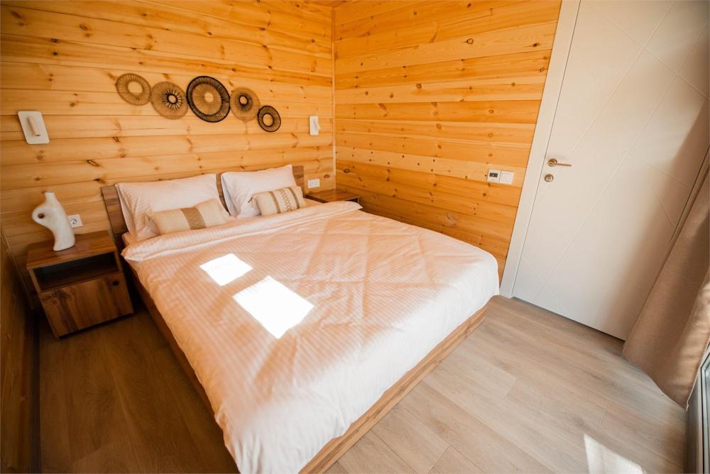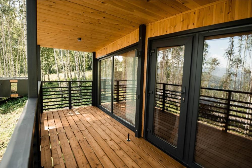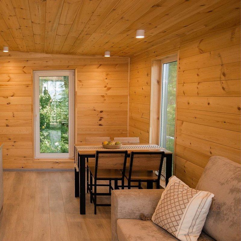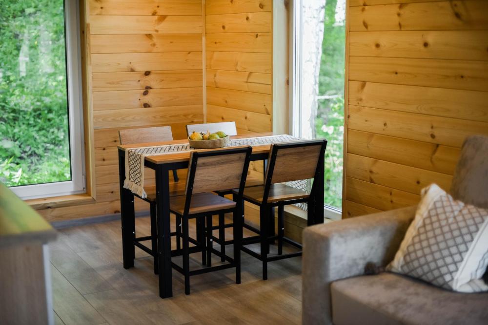 Просторный двухкомнатный дом, из панорамных окон которого открывается восхитительный вид на горы. Дом включает в себя уютную спальню с двуспальной кроватью и прикроватными тумбочками. Спокойные цвета, мягкий белоснежный текстиль и утренний свет создают атмосферу полного расслабления. Гостиная дома с большим мягким диваном, обеденным столом и кухонной зоной. Современная душевая с раковиной, зеркалом и туалетом. Ванная комната укомплектована феном, набором полотенец и косметическим набором для каждого гостя. Все дома оборудованы системой "теплый пол" и мощным обогревом, что делает отдых комфортным даже в самые сильные морозы.
