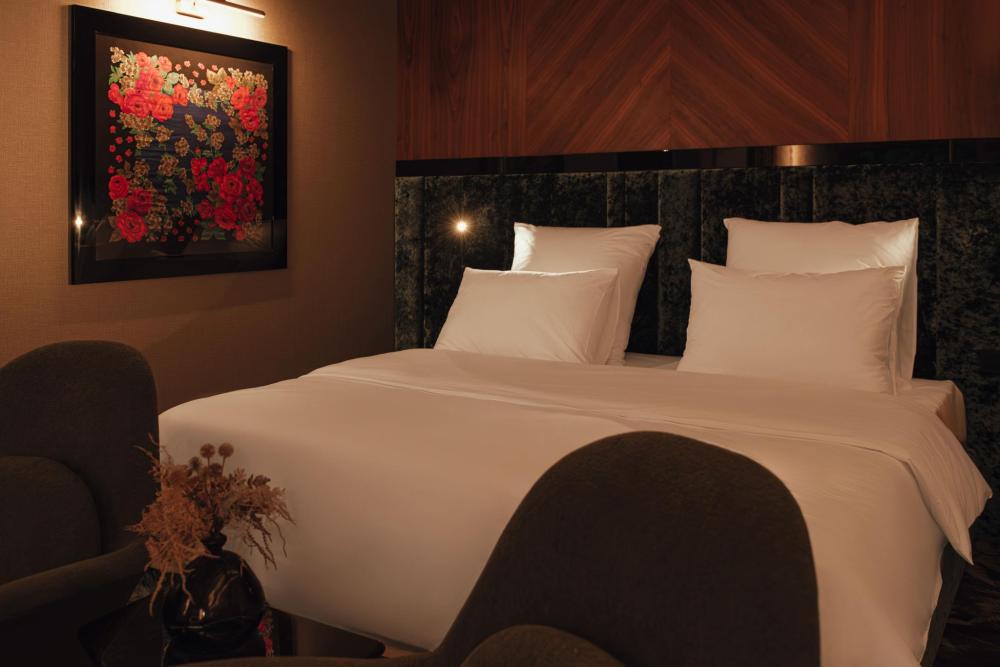 Номер площадью 38 кв.м. с возможностью объединить с категорией Твин в один большой. В каждом номере имеется: двуспальная кровать с ортопедическим матрасом, прикроватные столики, телевизор, рабочее место, чайнофейная и кофейная станция, кресла, шкаф, отдельный с/у, душевая, багажное отделение, ванные принадлежности, халаты и тапочки.