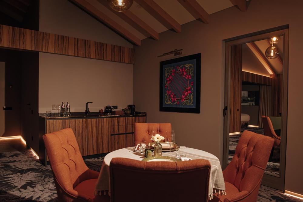 Эксклюзивный номер площадью 62 кв.м. с зоной отдыха и отдельной спальней. Оснащен панорамными окнами с прекрасным, живописным видом на первозданную природу Алтая. В каждом номере имеется: Двуспальная кровать, прикроватные столики, телевизор, рабочее место, чайнофейная и кофейная станция, кресла, шкаф, отдельный с/у, душевая, багажное отделение, ванные принадлежности, халаты и тапочки.