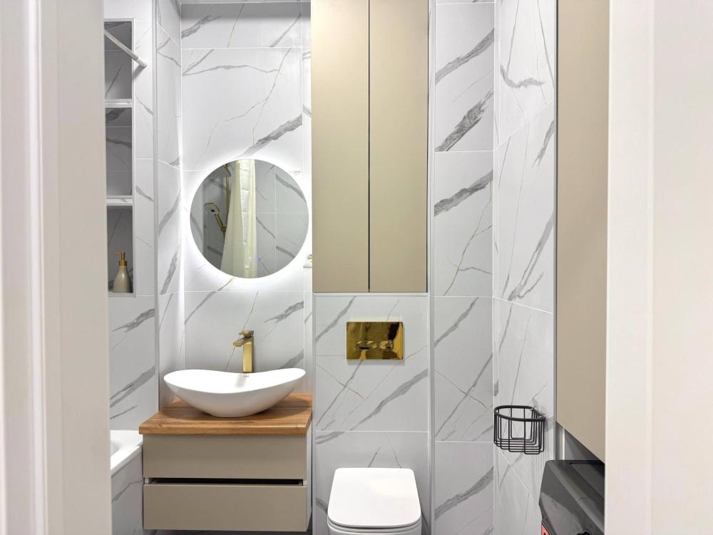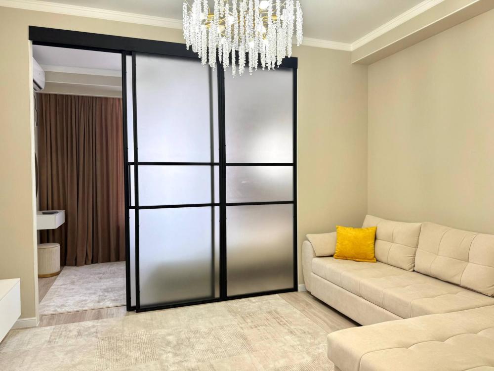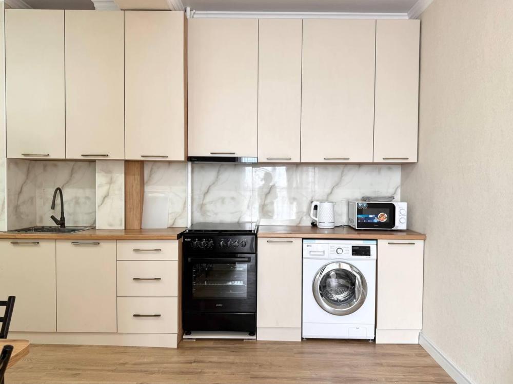 Просторная спальня с удобной двуспальной кроватью и зоной для отдыха. В квартире современная кухня с плитой, холодильником, микроволновкой, чайником и необходимой посудой, функциональная прихожая с местом для хранения одежды и личных вещей, чистая ванная комната с душем. Свежее постельное бельё, полотенца и базовые средства гигиены. Бесплатный быстрый Wi-Fi, стиральная машина, телевизор, отопление.