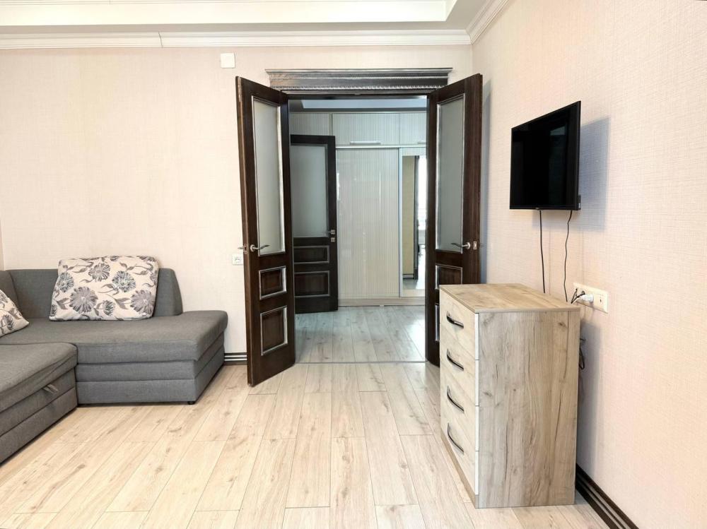 в квартире имеется двухместная кровать с удобным матрасом, раскладной диван, кондиционер, бесплатный Wi-Fi и телевидение, современная бытовая техника: телевизор, стиральная машина, холодильник, микроволновая печь и многое другое. Гостям предоставляются полотенца и постельное бельё.