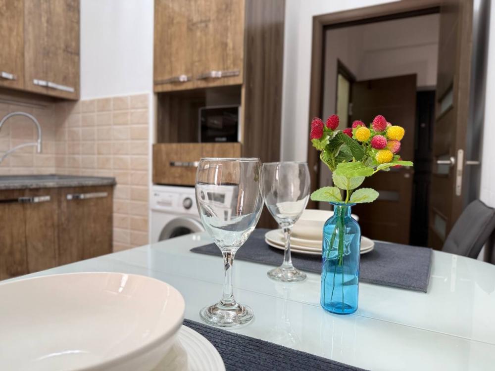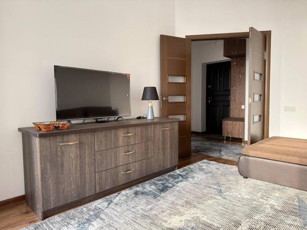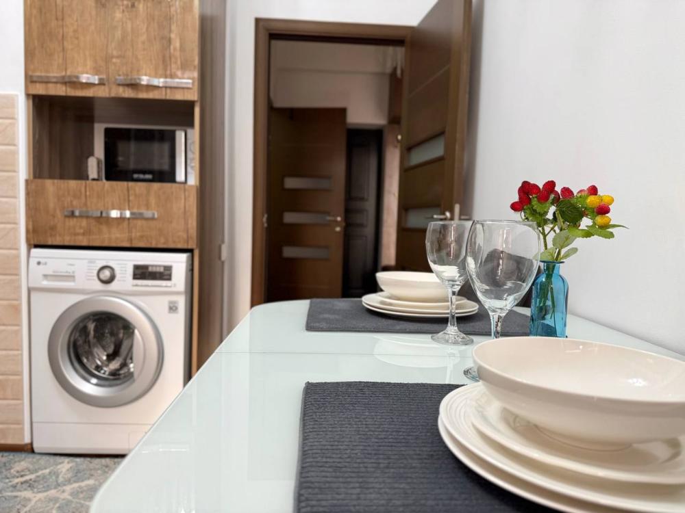 в квартире имеется двухместная кровать с удобным матрасом, раскладной диван, кондиционер, бесплатный Wi-Fi и телевидение, современная бытовая техника: телевизор, стиральная машина, холодильник, микроволновая печь и многое другое. Гостям предоставляются полотенца и постельное бельё.