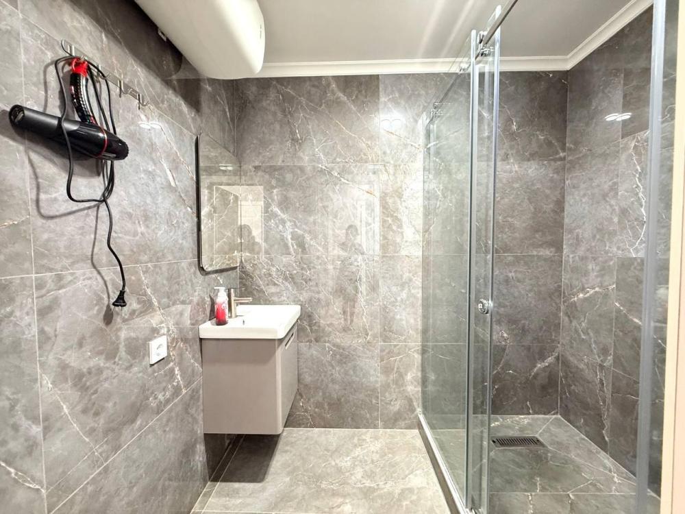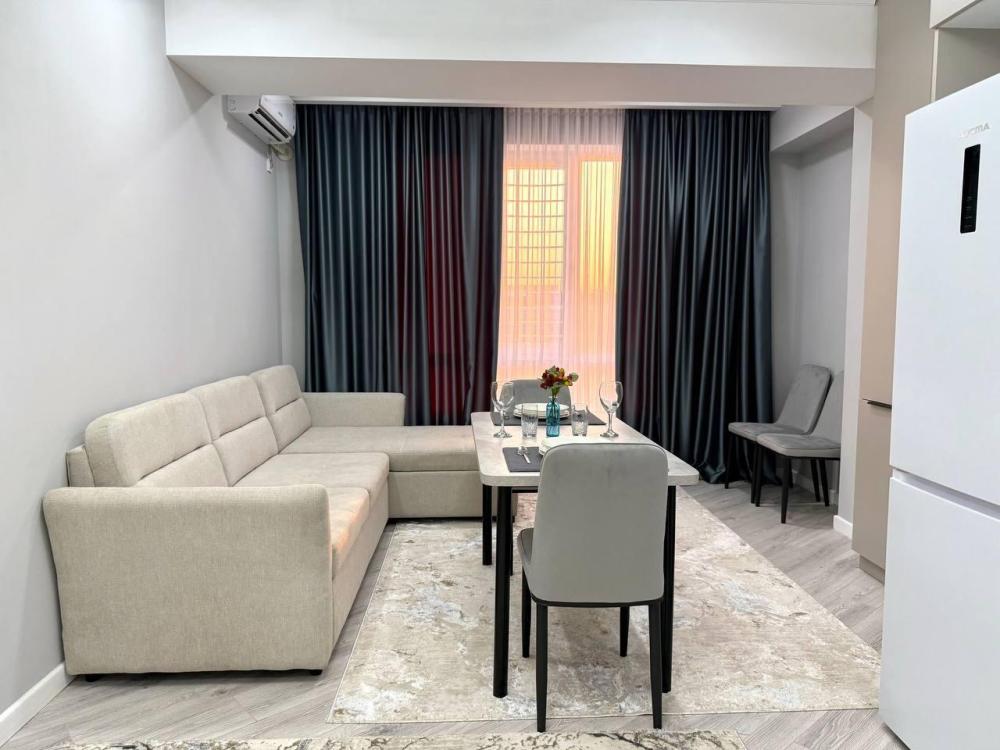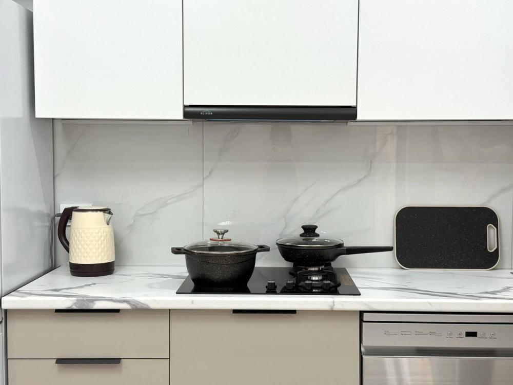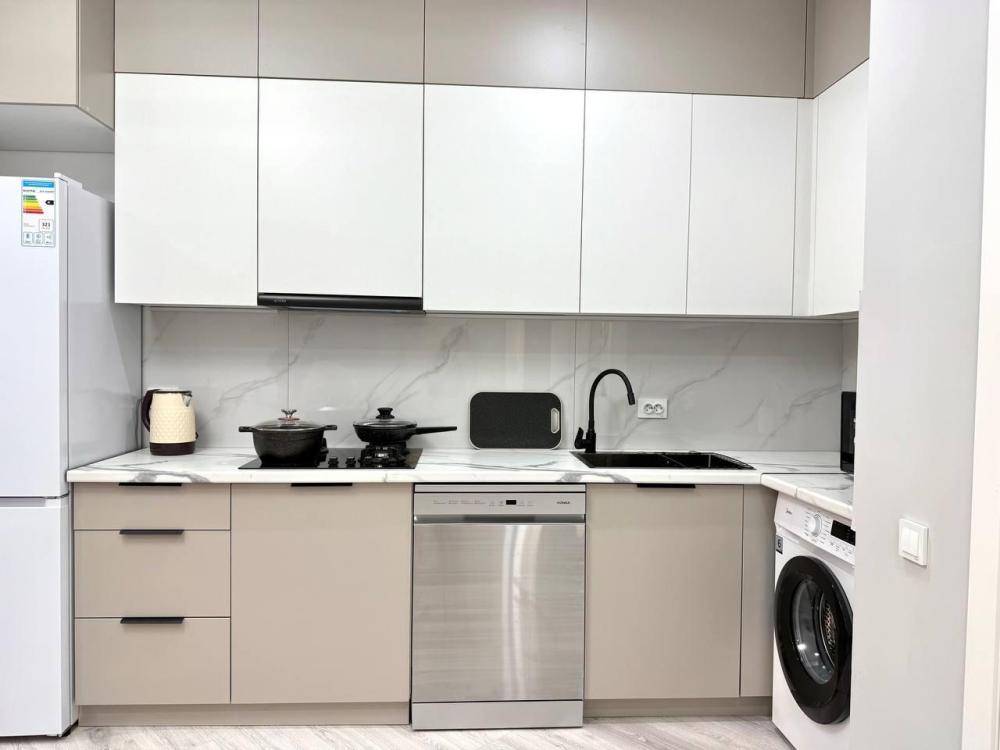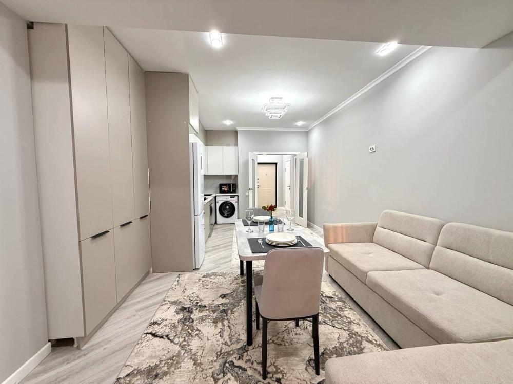 Просторная спальня с удобной двуспальной кроватью и зоной для отдыха. В квартире современная кухня с плитой, холодильником, микроволновкой, чайником и необходимой посудой, функциональная прихожая с местом для хранения одежды и личных вещей, чистая ванная комната с душем. Свежее постельное бельё, полотенца и базовые средства гигиены. Бесплатный быстрый Wi-Fi, стиральная машина, телевизор, отопление.