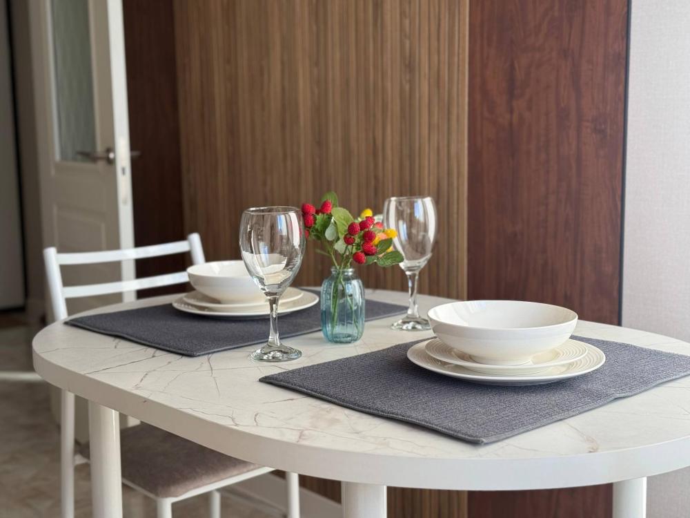 В распоряжении гостей уютная спальня с двуспальной кроватью и зоной для отдыха, современная кухня, оснащённая плитой, холодильником, микроволновкой, чайником и набором посуды, удобная прихожая с местом для хранения одежды и личных вещей, чистая ванная комната с душем. Гостям предоставляются свежее постельное бельё, полотенца и базовые туалетные принадлежности. А также следующие удобства и сервис: бесплатный высокоскоростной Wi-Fi, стиральная машина, телевизор, система отопления