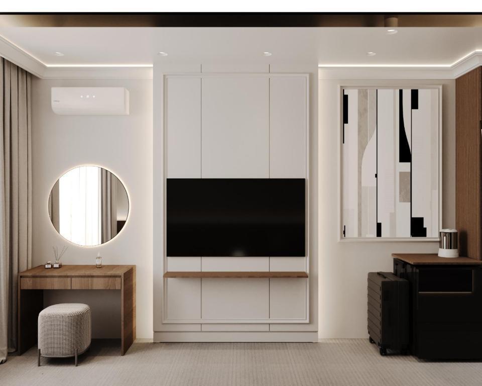 Номер люкс с современным ремонтом и со всеми удобствами. В распоряжении гостей удобная мебель, телевизор, шкаф и собственная ванная комната.
