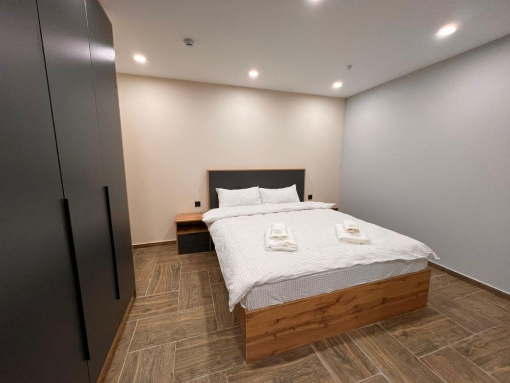 Уютный номер категории люкс. В распоряжении гостей большая кровать, халат, тапочки, полотенца, принадлежности для душа.