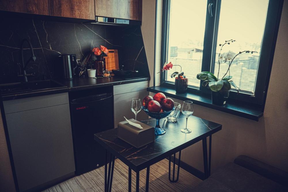 Комфортабельные и просторные апартаменты-таунхаус с отдельным заездом и входом. В апартаментах есть телевизор Smart TV и WI-FI, кондиционер, кухня со всей необходимой техникой и посудой, кровать размера king size, собственная ванная комната с душем и феном. Из окон открывается панорамный вид на горы. Гостям предоставляются полотенца и постельное белье.