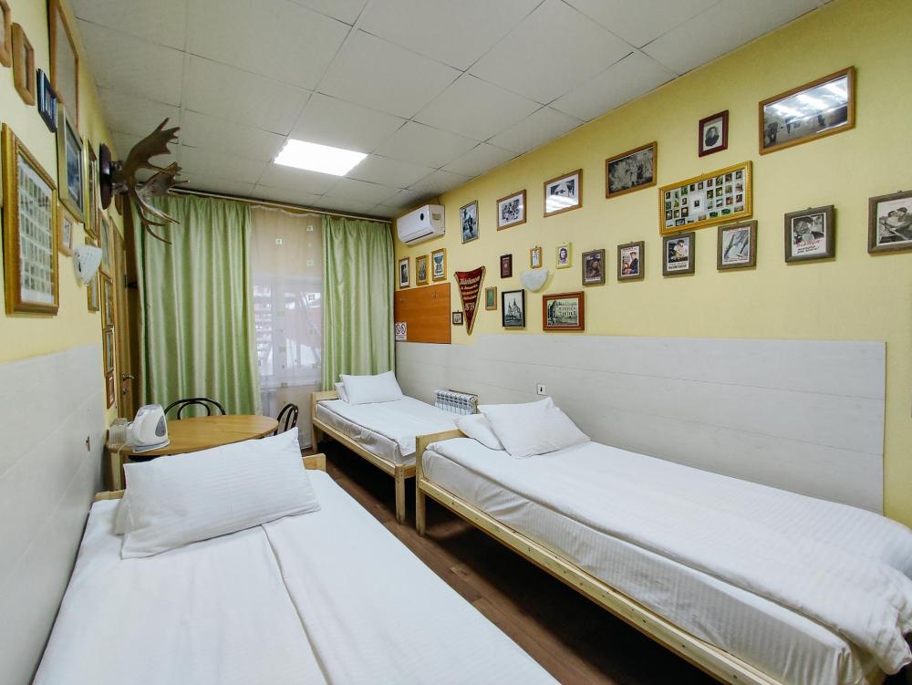 Трехместный номер оснащен тремя односпальными кроватями , в номере душ, туалет, полотенца. одноразовые тапочки. Номер оснащен телевизором, кондиционером, чайником, столовой посудой.