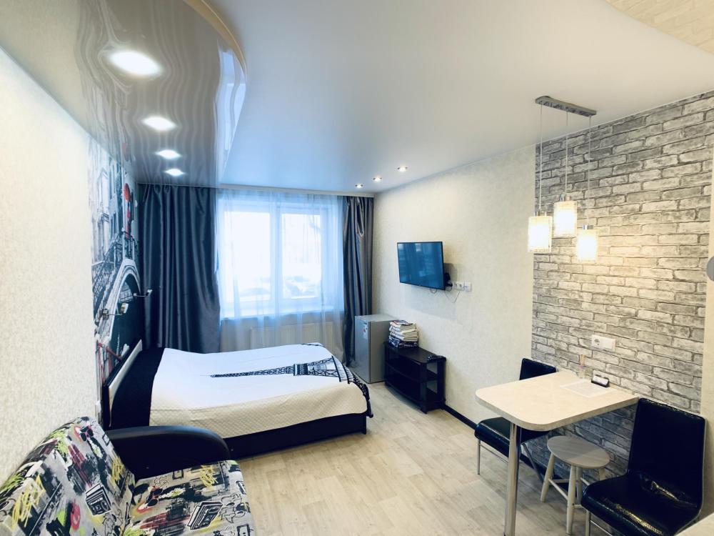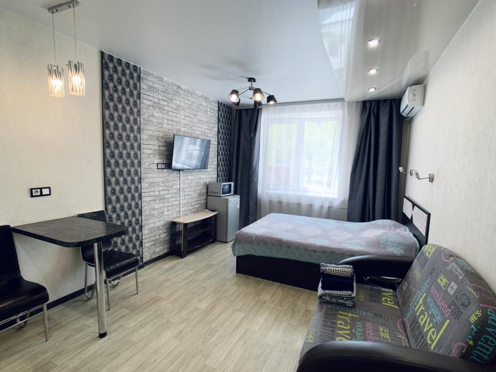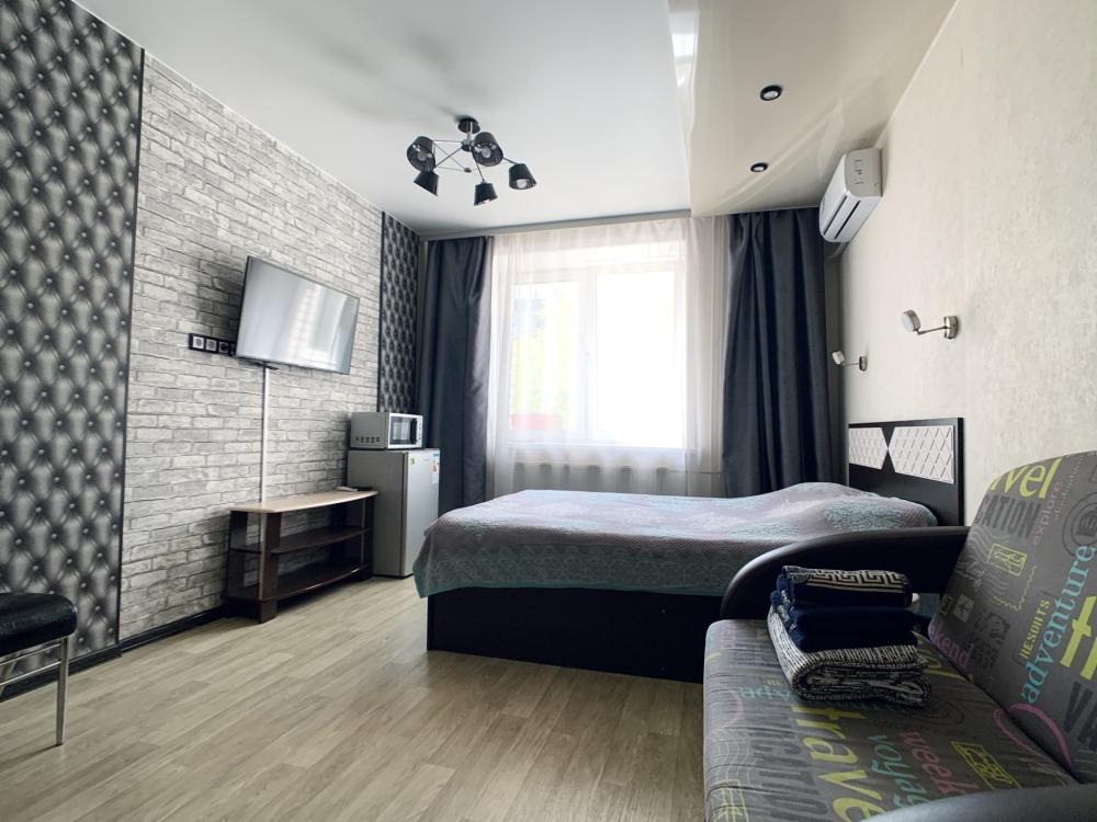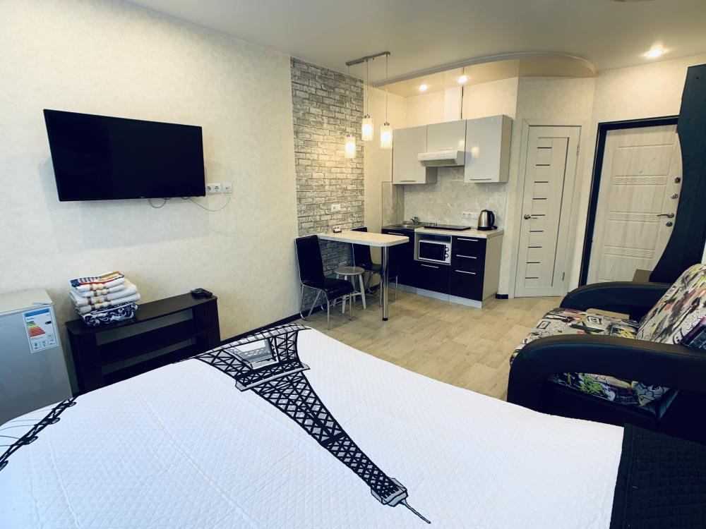Апартаменты находятся в центре города на 1 этаже. В апартаментах есть высокоскоростной Wi-Fi, цифровое телевидение, кухня со столовыми принадлежностями, бытовой техникой. А так же гладильная доска, утюг, сушилка для белья, фен для сушки волос, стиральная машина автомат. Выдается чистое постельное белье и полотенца