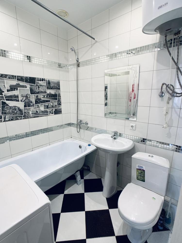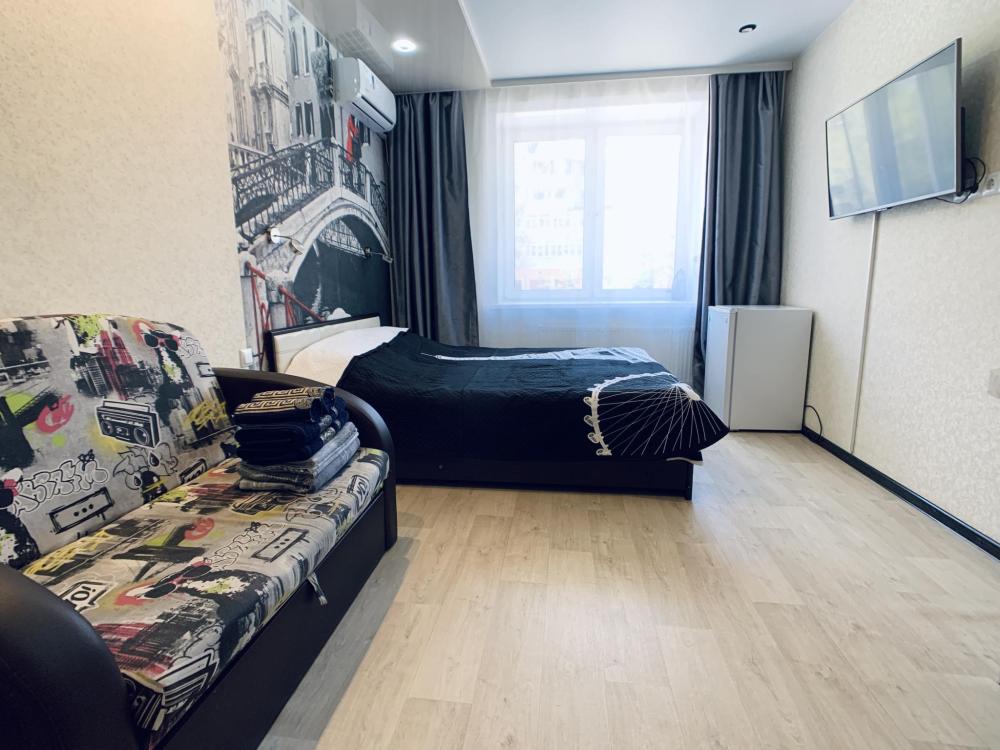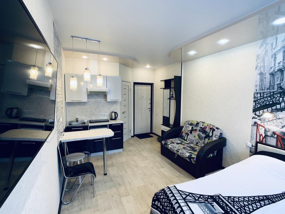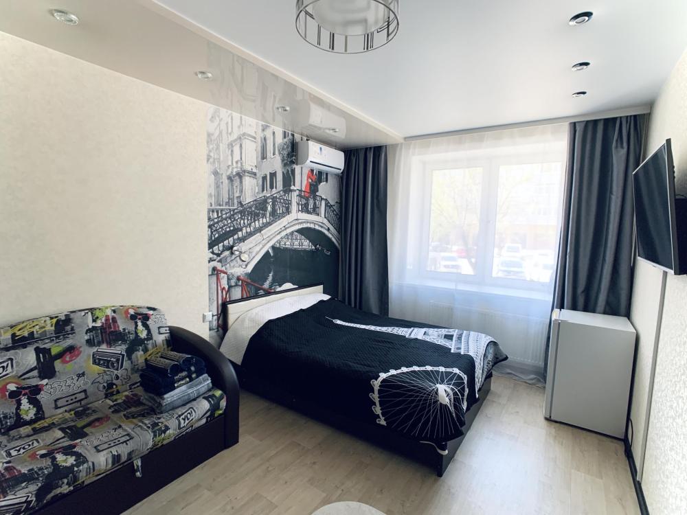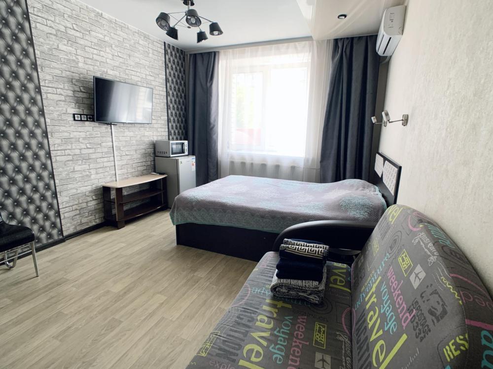 Апартаменты находятся в центре города на 1 этаже. В апартаментах есть высокоскоростной Wi-Fi, цифровое телевидение, кухня со столовыми принадлежностями, бытовой техникой. А так же гладильная доска, утюг, сушилка для белья, фен для сушки волос, стиральная машина автомат. Выдается чистое постельное белье и полотенца