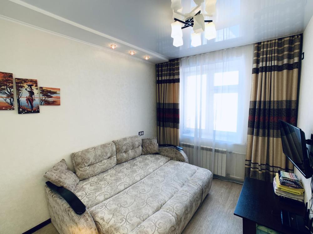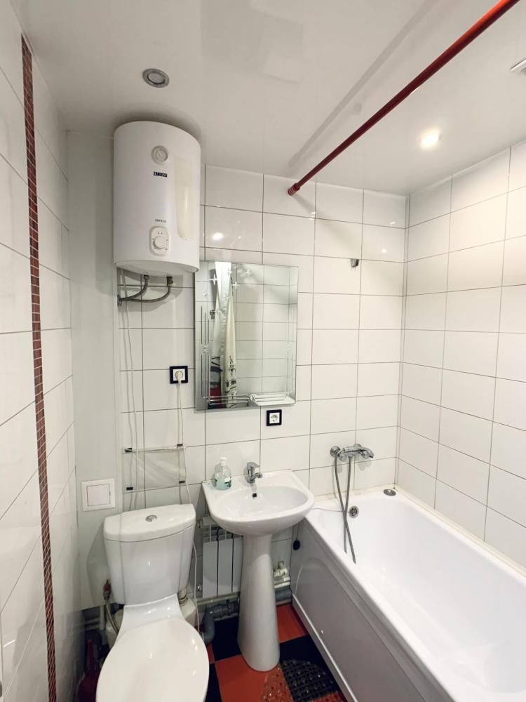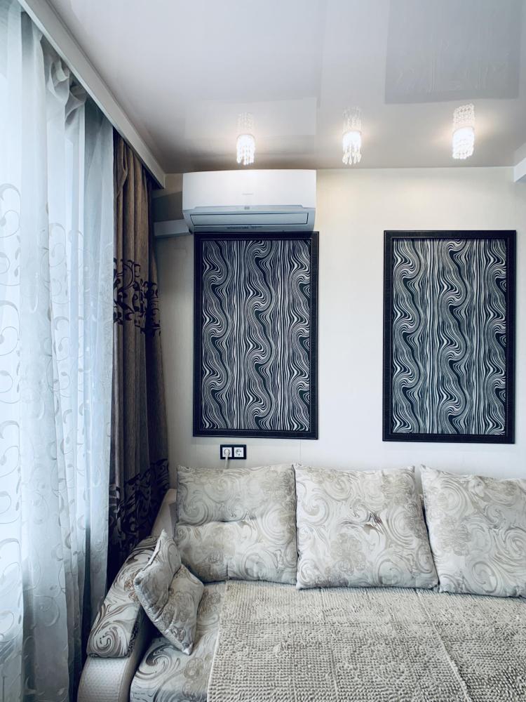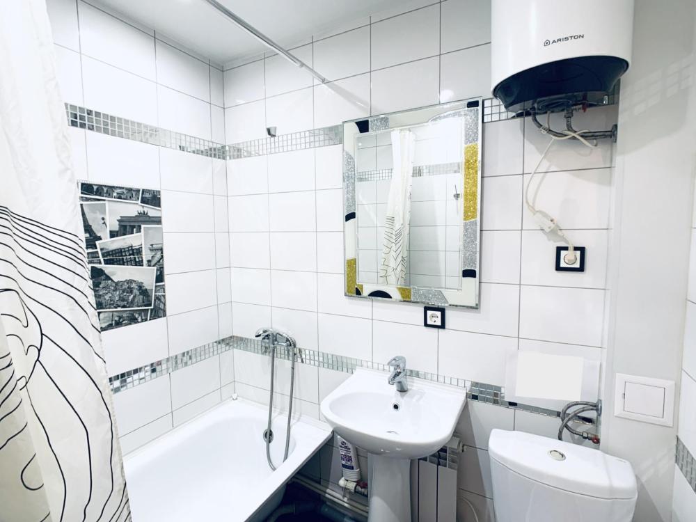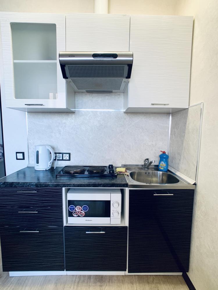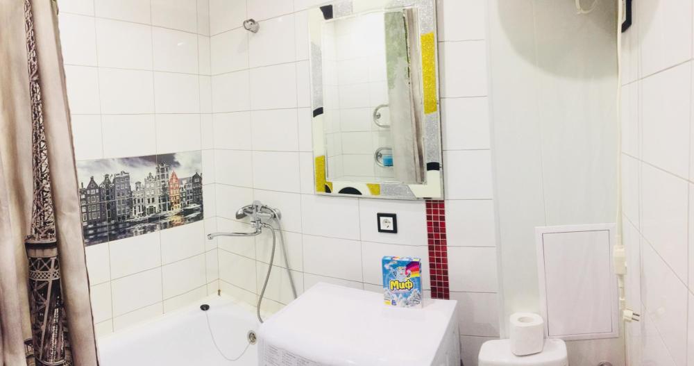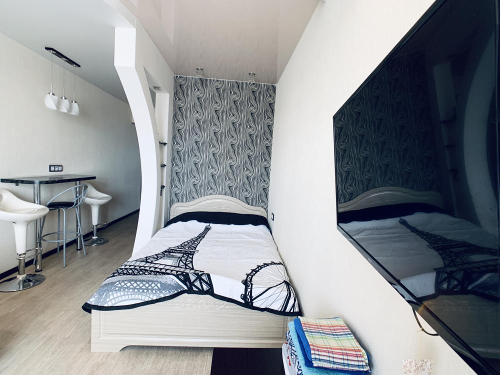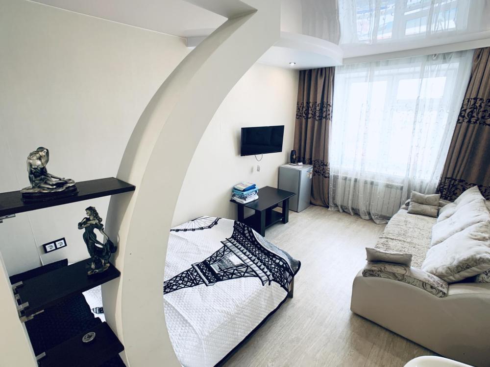 Апартаменты находятся в самом центре города на 12 этаже. В апартаментах есть высокоскоростной Wi-Fi, цифровое телевидение, кухня со столовыми принадлежностями, бытовой техникой. А так же гладильная доска, утюг, сушилка для белья, фен для сушки волос, стиральная машина автомат. Выдается чистое постельное белье и полотенца