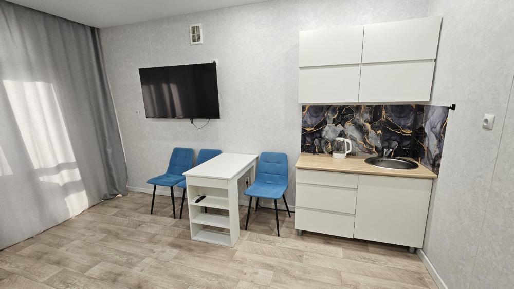 Квартира-студия для 3 гостей Уютная квартира студия в отличном районе с развитой инфраструктурой. Рядом китайский рынок! Свежий ремонт, хорошая мебель и вся необходимая бытовая техника и посуда. Прекрасно подойдёт для командированных, туристов, путешественников, семей с детьми, романтических свиданий. Рядом располагается: В шаговой доступности: - Медицинские центры: Евгения, Доктор Пак, Спектр. - ТЦ: Ярмарка, Мега - Ярмарка - Автовокзал - Китайский рынок Все наши апартаменты оснащены: - Бытовая техника: плита, холодильник, микроволновка, чайник, стиральная машина, телевизор, фен, утюг - Дополнительно: постельное бельё, полотенца, средства гигиены, набор посуды и столовых принадлежностей; - Удобства: большой двуспальный диван и кресло- кровать, балкон, бесплатная парковка. У нас вы найдете все, что нужно для комфортного отдыха! Правила заселения: - Заезд после 14:00 (круглосуточно) - Выезд до 12.00 Ранний заезд или поздний выезд обговаривается с менеджером. - При заселении необходимо иметь документ удостоверяющий личность и возвратный залог. Апартаменты не предоставляются: - Для проведения шумных праздников и вечеринок; - Лицам, курящим в помещении;