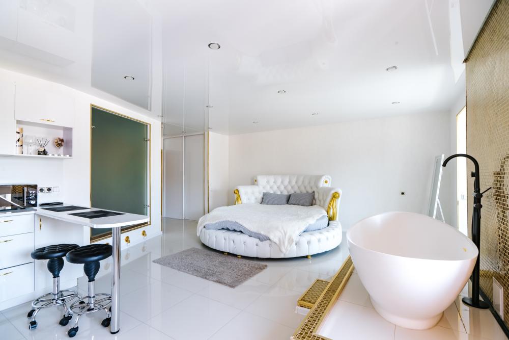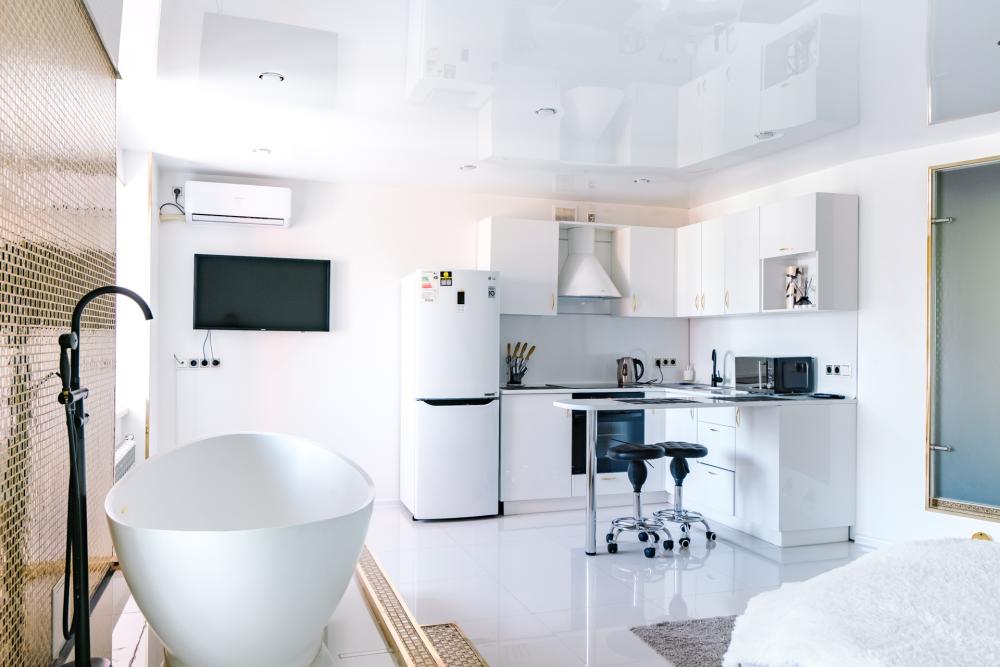 Просторная студия для двоих, в квартире сделан дизайнерский ремонт, уют и чистота. Рядом с домом находятся автобусная остановка, фитнес клуб и парковка. В шаговой доступности магазины, торговые центры, рестораны. Студия расположена на 14 этаже дома, возможно размещение 2 гостей, спальное место - двуспальная кровать. В данной квартире есть всё для уюта и комфортного проживания: ЖК телевизор, Wi-Fi безлимитный, полотенца, постельные принадлежности, стиральная машина, микроволновая печь, фен, утюг, чайник, гладильная доска, столовые приборы, посуда. Квартира не сдается для проведения праздников, вечеринок и других видов коллективных собраний.