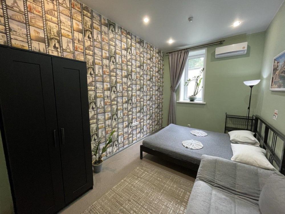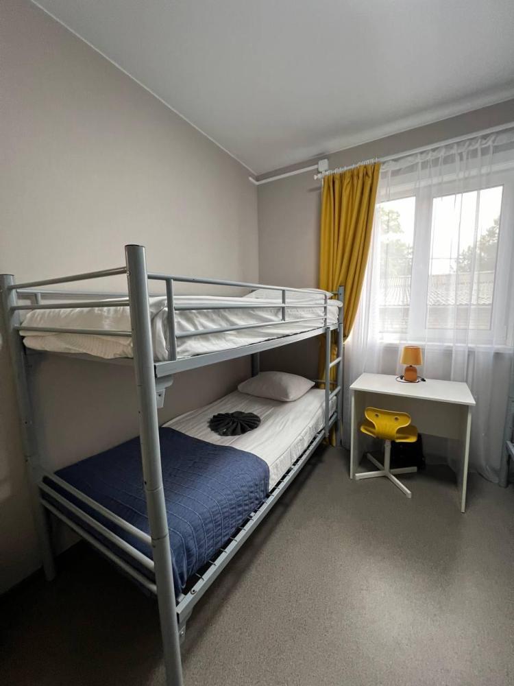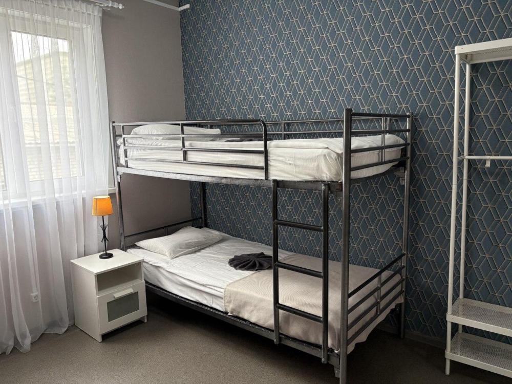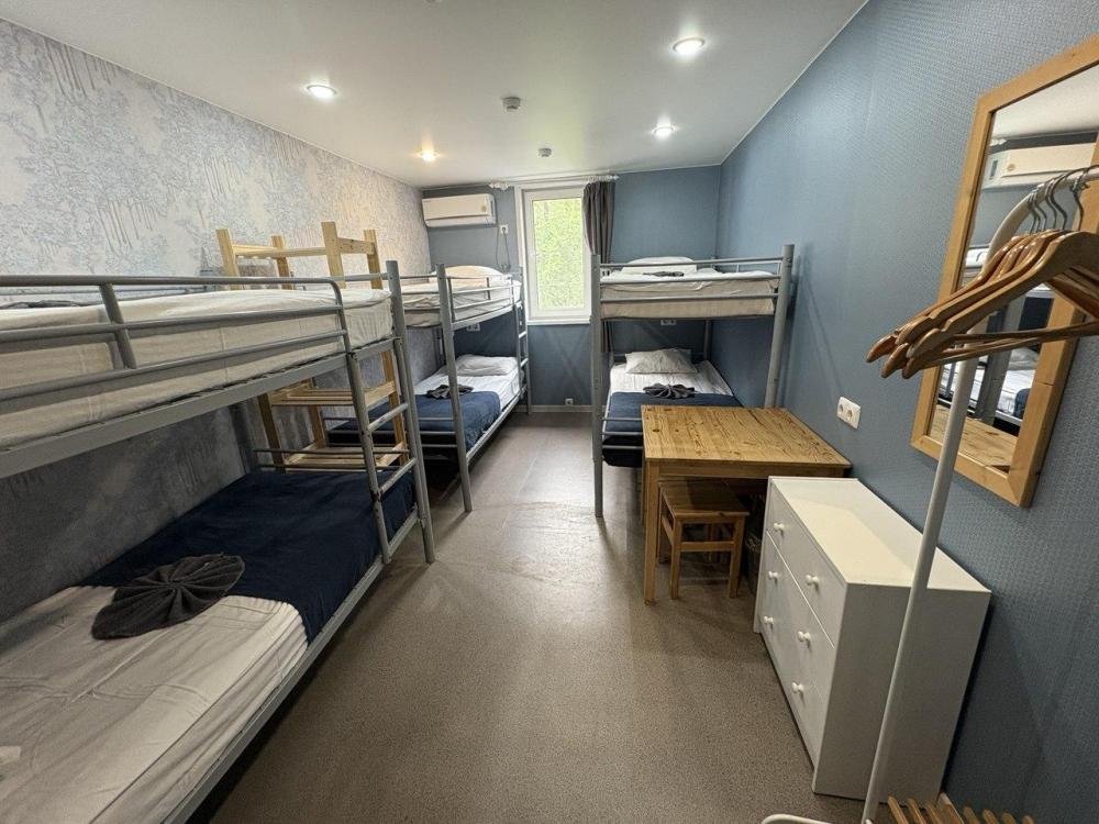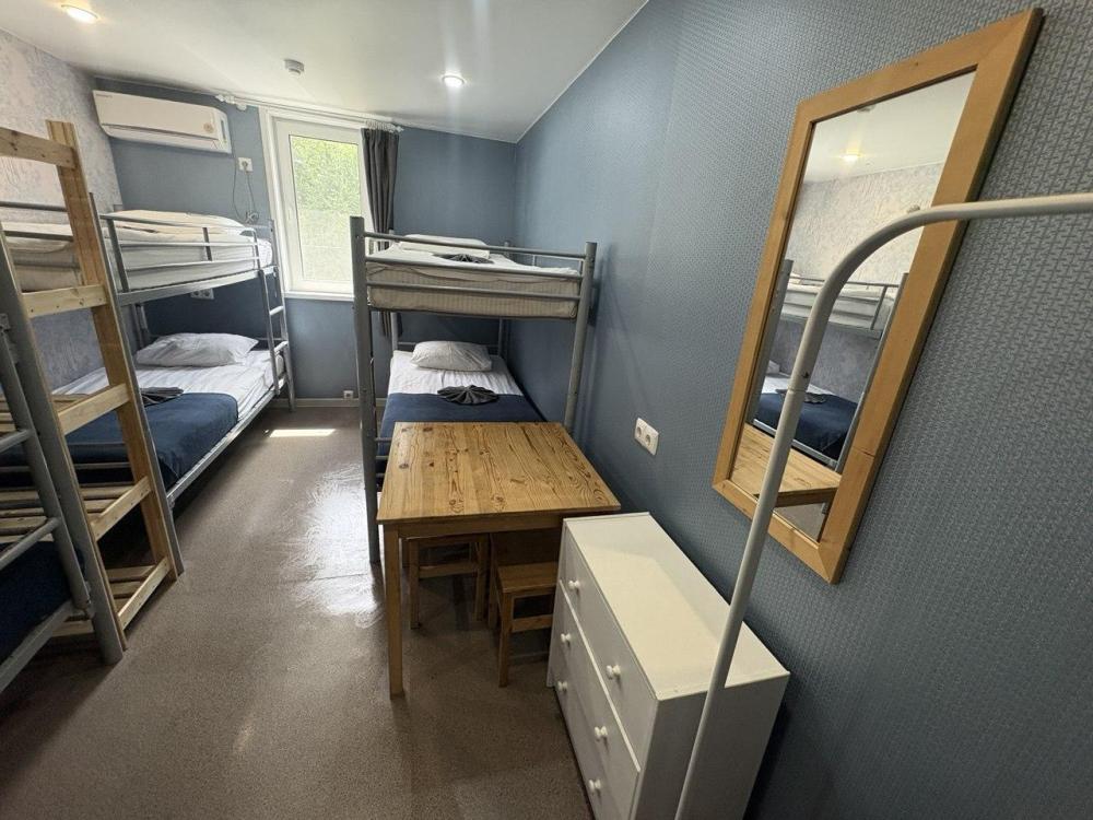 Номер с 2х ярусными кроватями. Спальное место 1,0м Х 2,0м. Комод, зеркало, стол, стулья, напольная вешалка. Удобства на этаже.