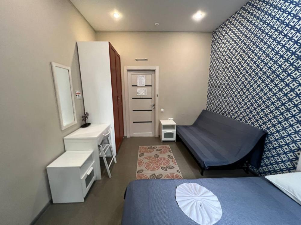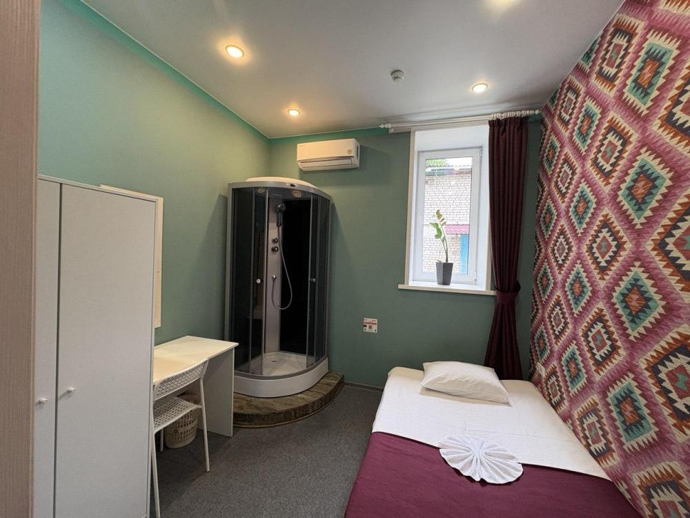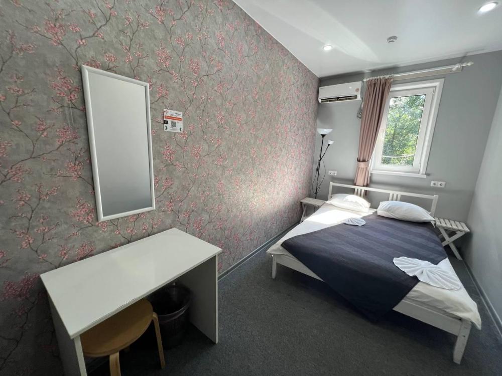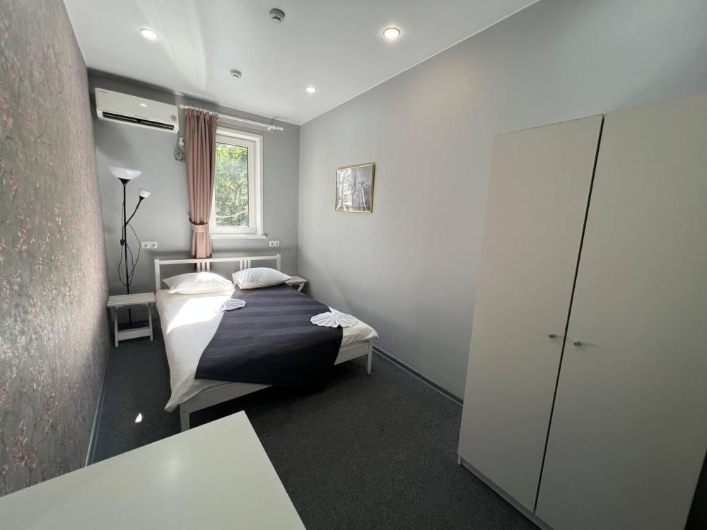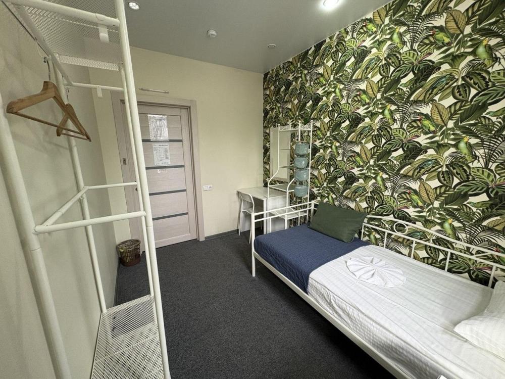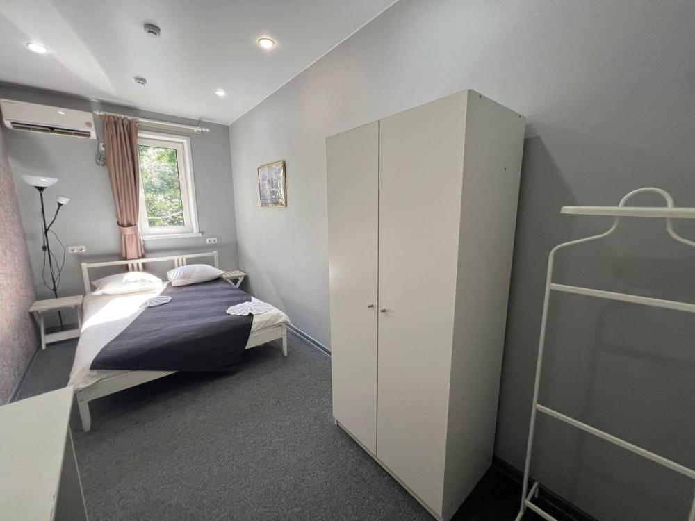 Одноместный номер, с односпальной (или 1,5 спальной) кроватью, с открытым гардеробом. Удобства на этаже.