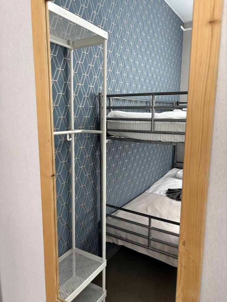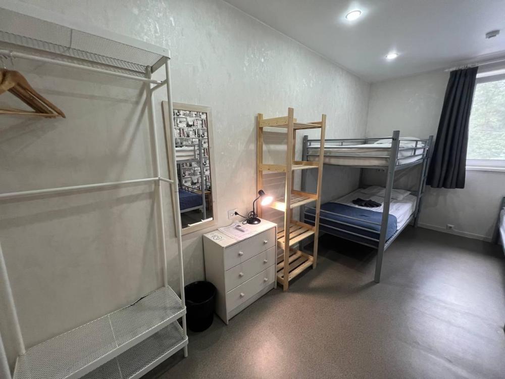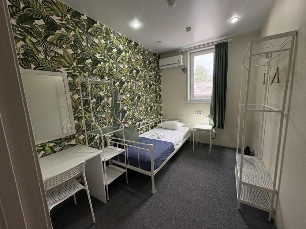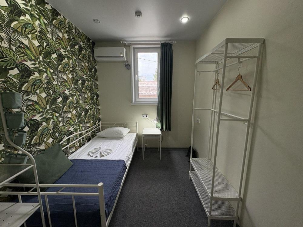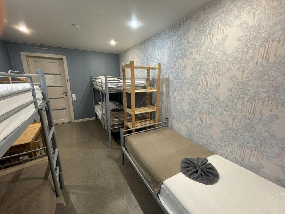 Номер, с 2х ярусной кроватью и стандартной односпальной кроватью. Размер спального места: 1,0м Х 2,0м Большая напольная вешалка, стол и стулья, комод. Удобства на этаже.