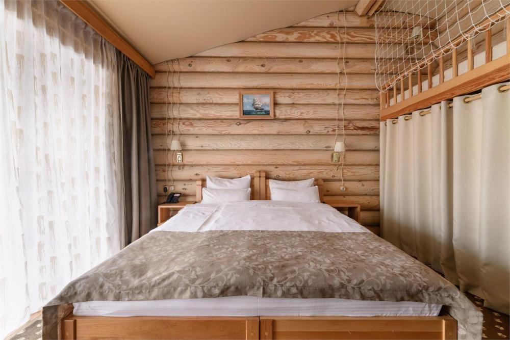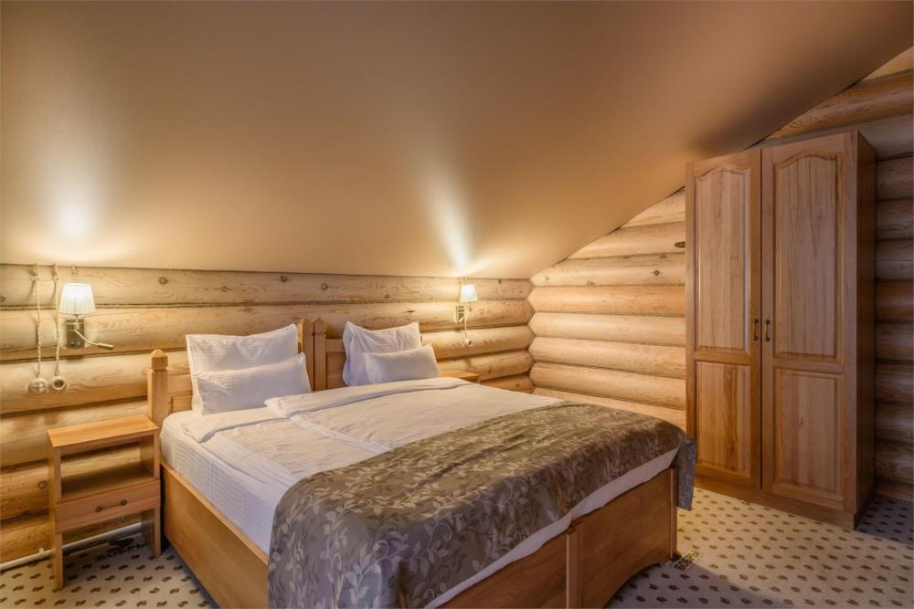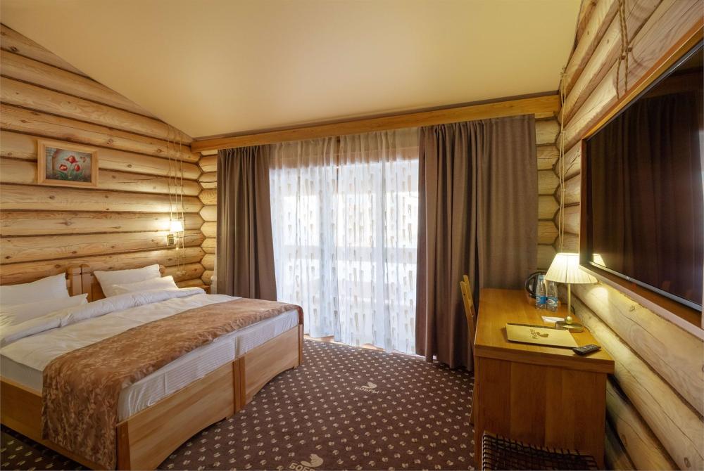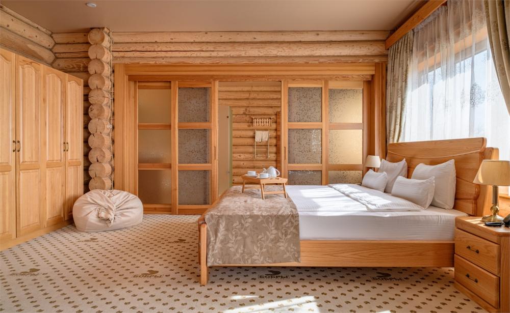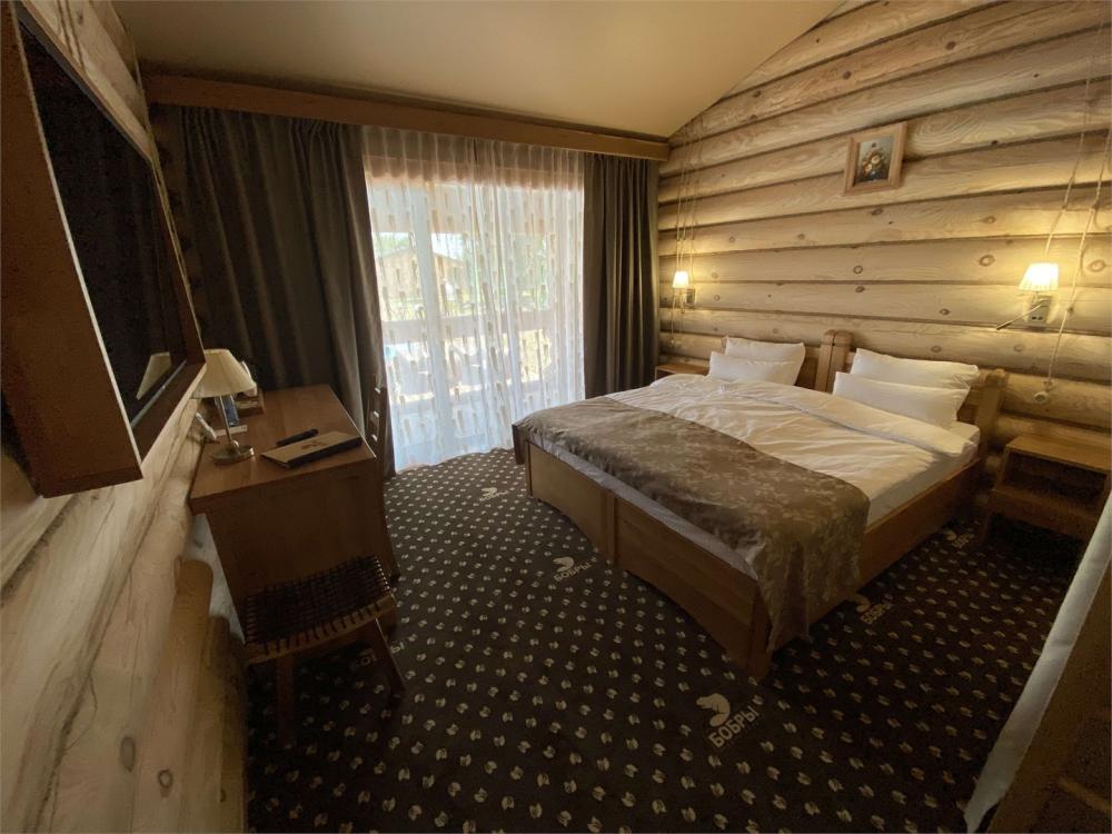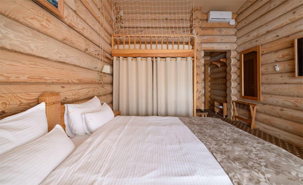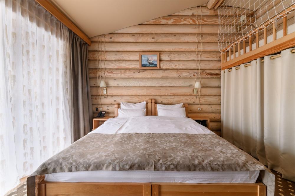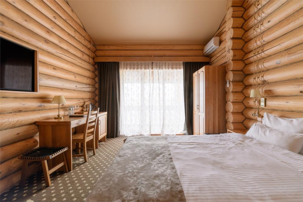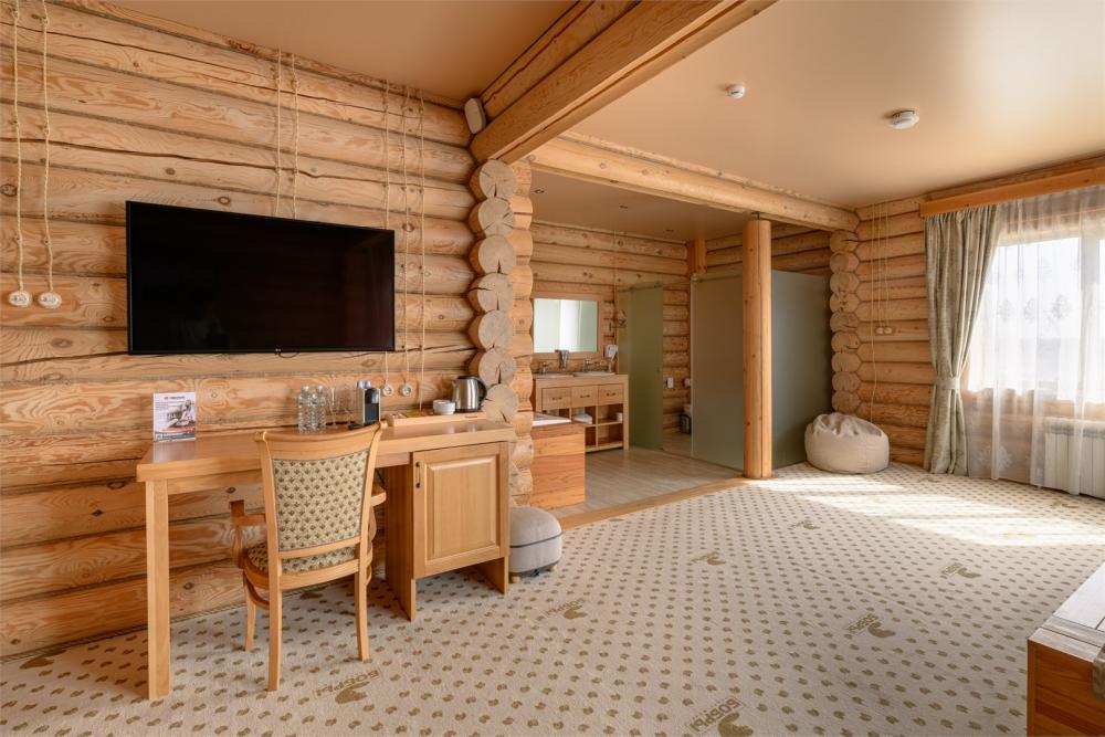 Комфортабельный, уютный, светлый номер из зимнего архангельского леса с балконом и видом на бассейн. В номере: двуспальная кровать или две односпальные, комплект мебели, телевизор, кондиционер, чайник, мини-холодильник, санузел с душем.