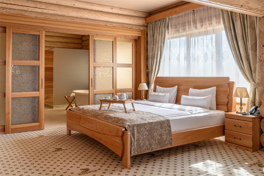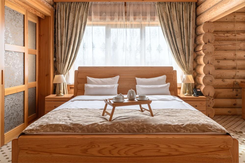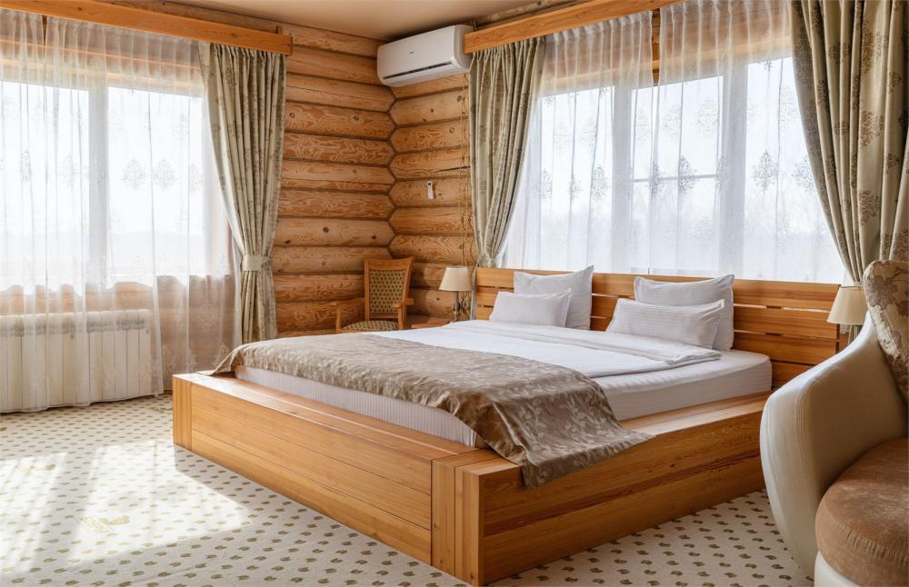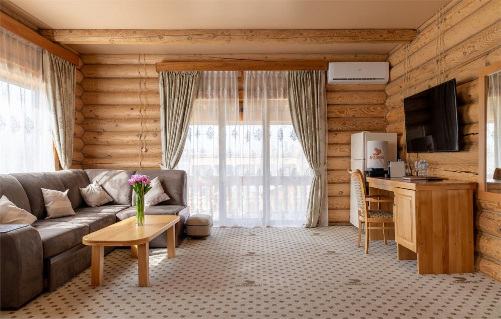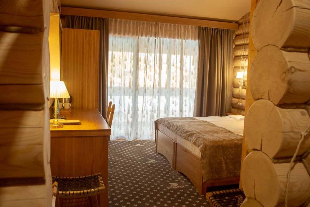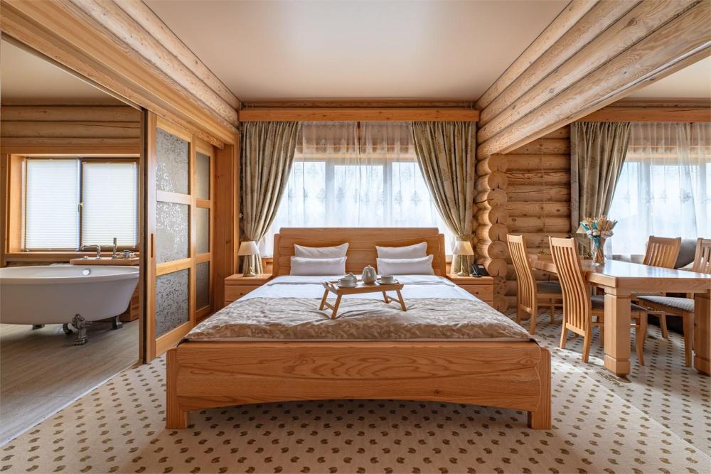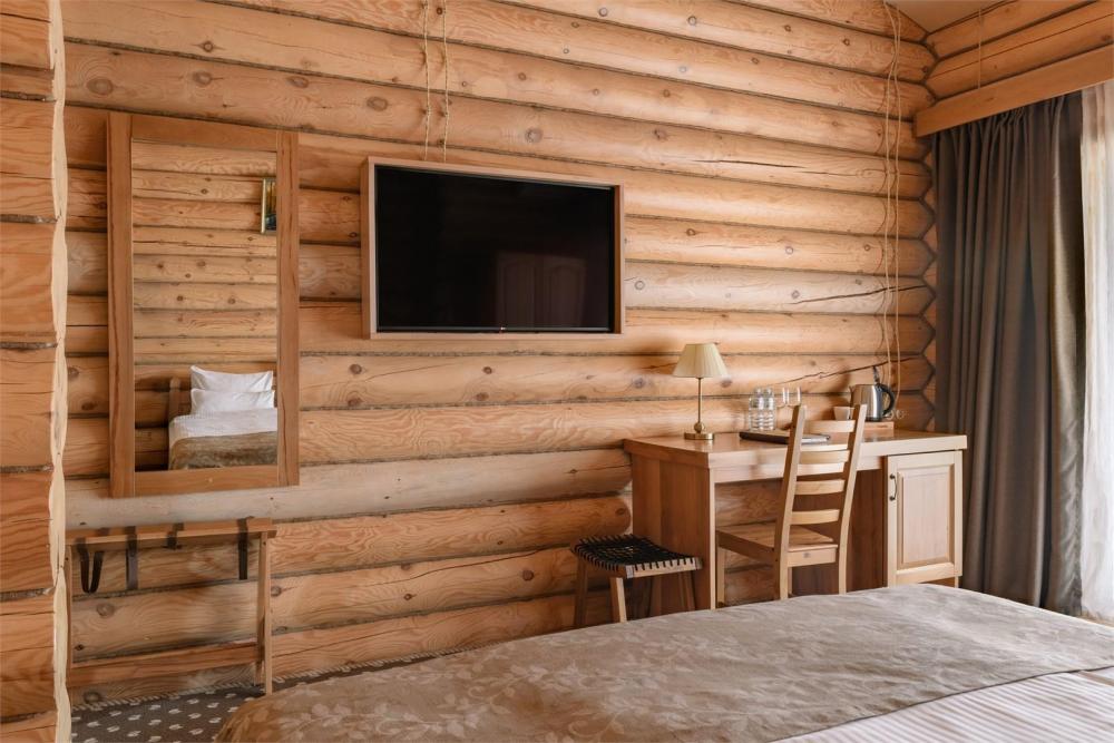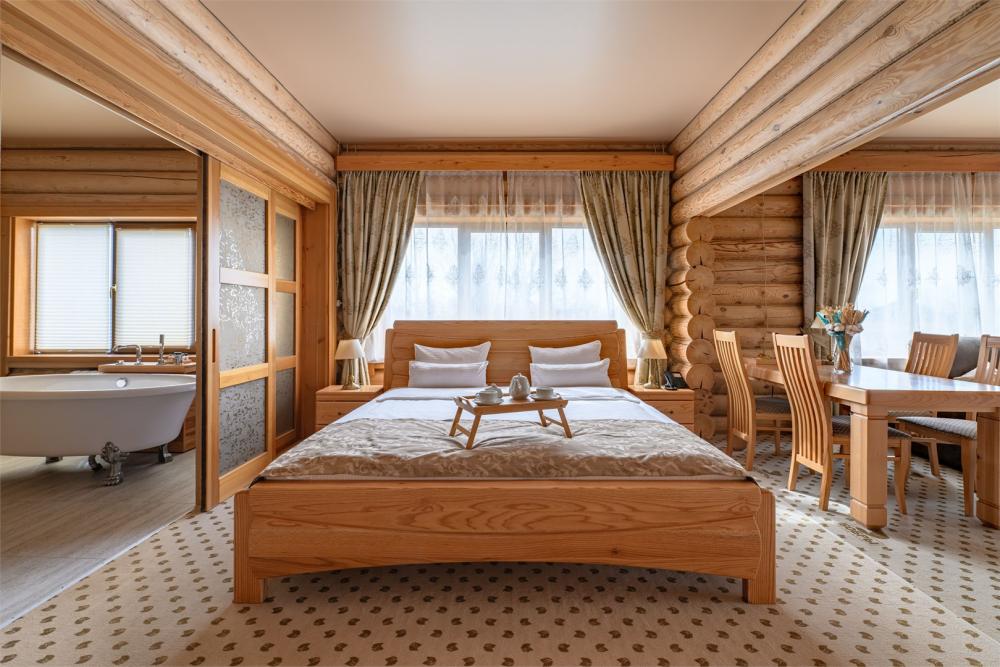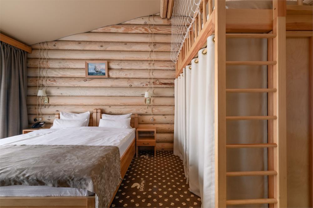 Комфортабельный, уютный, светлый номер из зимнего архангельского леса с балконом и видом на бассейн. В номере: двуспальная кровать или две односпальные, комплект мебели, телевизор, кондиционер, чайник, мини-холодильник, санузел с душем.