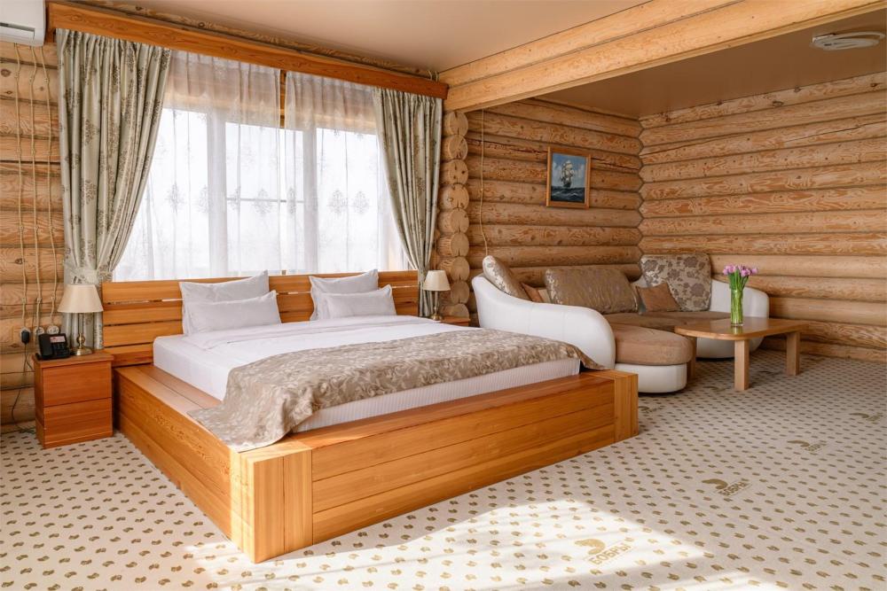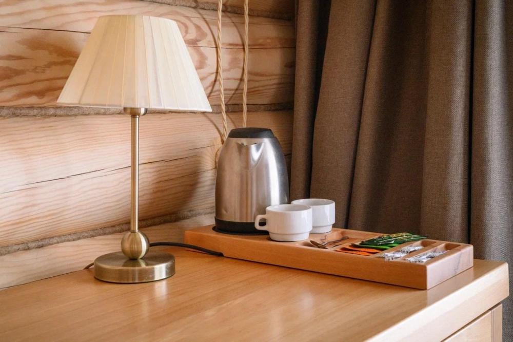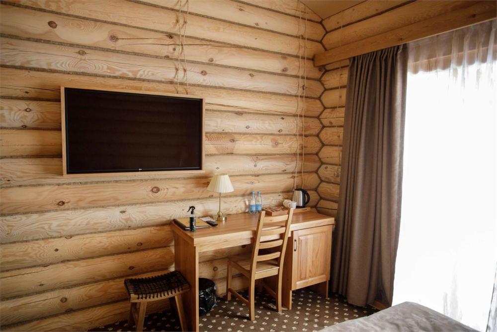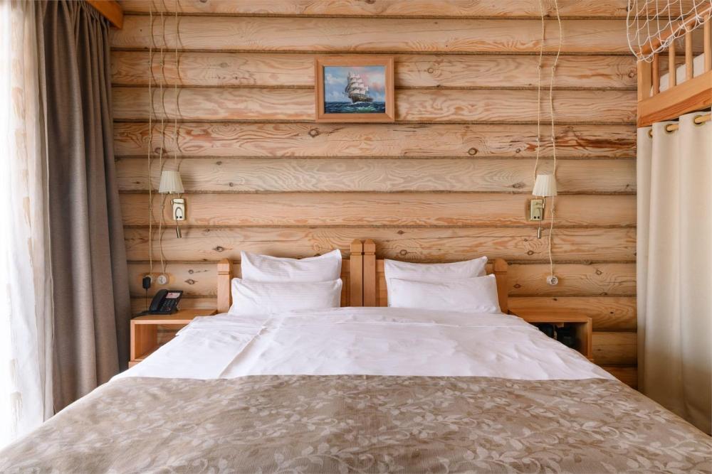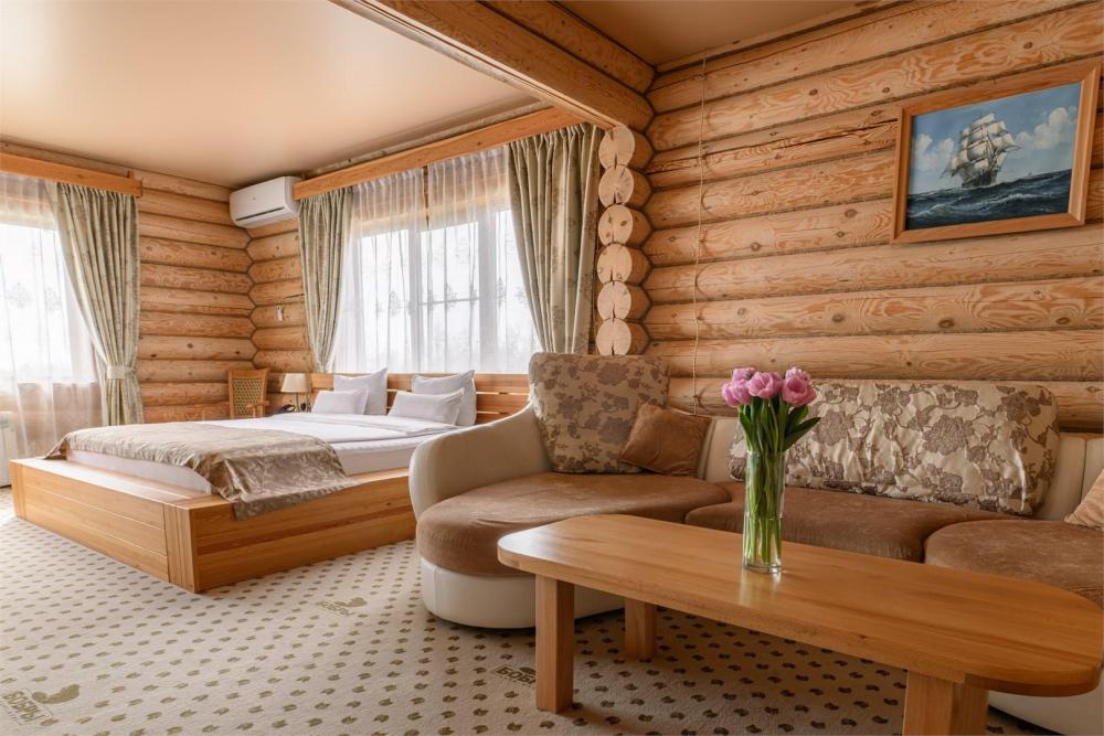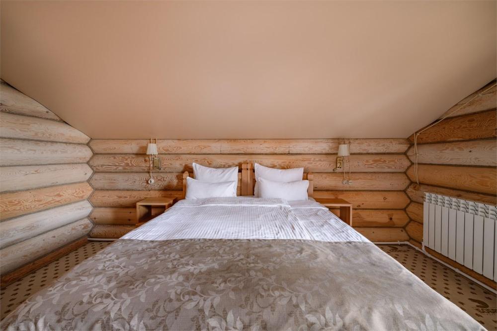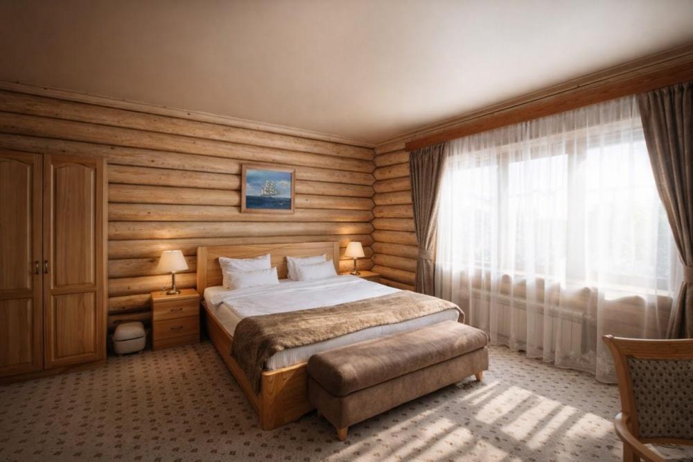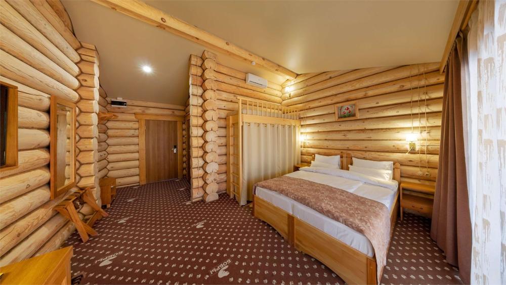 Комфортабельный, уютный, светлый номер из зимнего архангельского леса, с прекрасным видом. В номере: двуспальная кровать, комплект мебели, телевизор, кондиционер, чайник, мини-холодильник, санузел с душем.