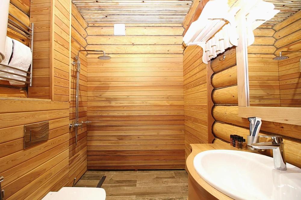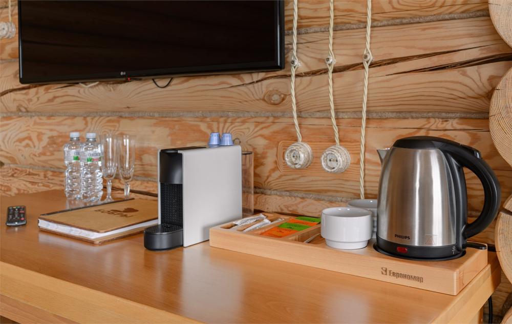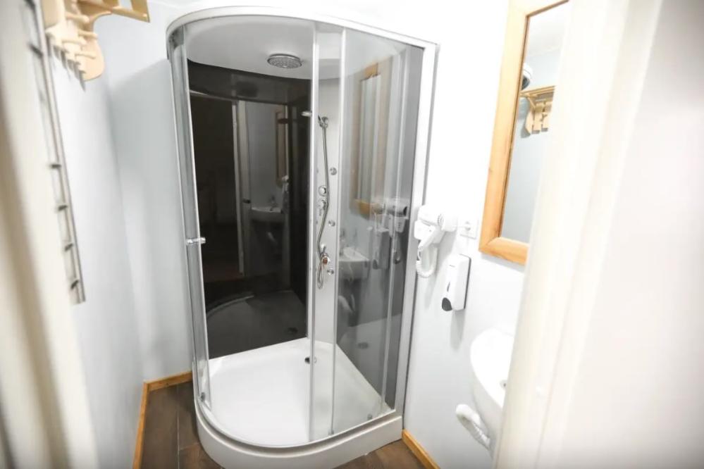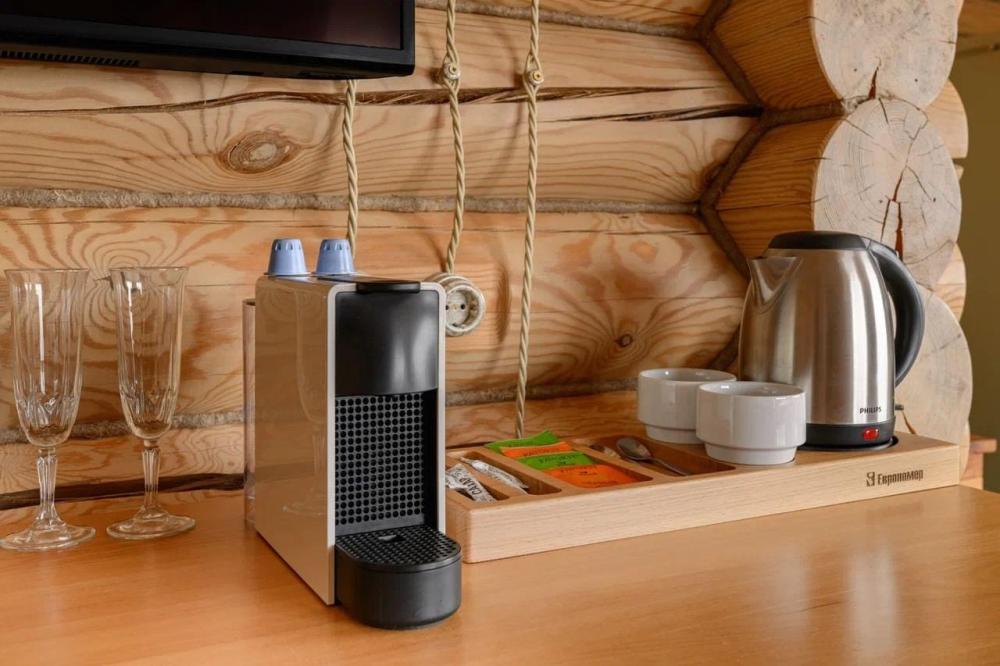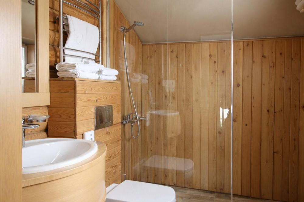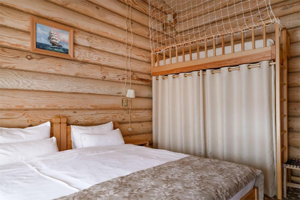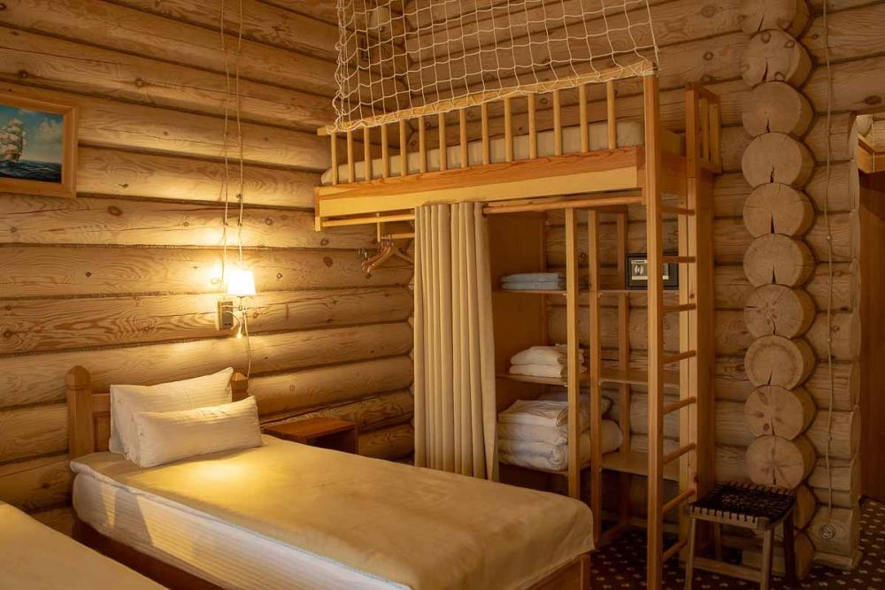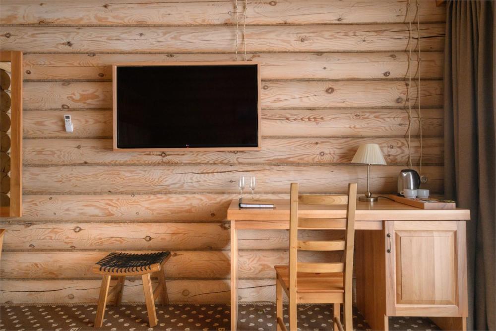 Комфортабельный, уютный, светлый номер из зимнего архангельского леса, с прекрасным видом. В номере: двуспальная кровать, комплект мебели, телевизор, кондиционер, чайник, мини-холодильник, санузел с душем.