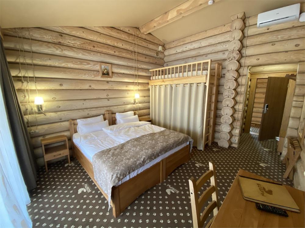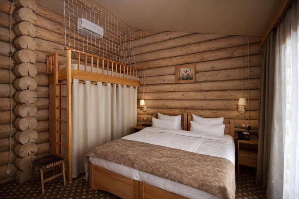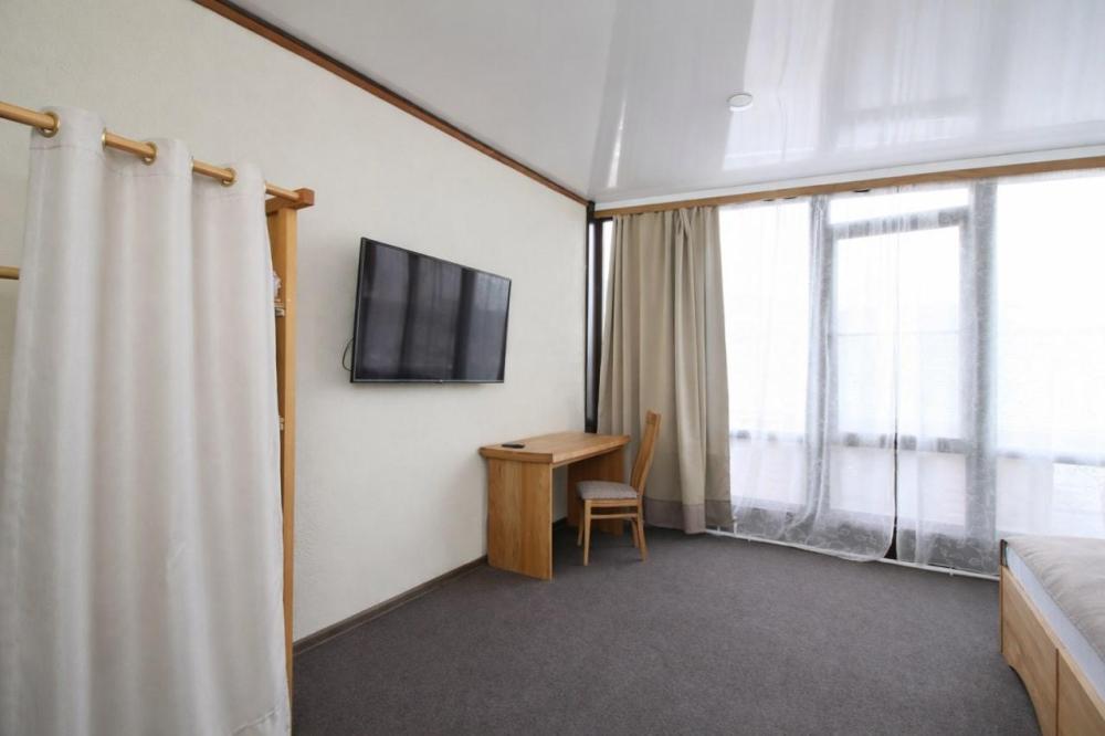 Комфортабельный, уютный, светлый номер из зимнего архангельского леса с балконом и видом на бассейн. В номере: двуспальная кровать, комплект мебели, телевизор, кондиционер, чайник, мини-холодильник, санузел с душем.