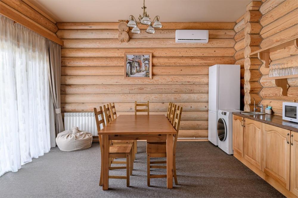 Комфортабельный, уютный, светлый одноэтажный сруб из зимнего архангельского леса, с прекрасным видом. С просторной гостиной и кухонной зоной со всем необходимым для приготовления пищи. Изолированная спальня.