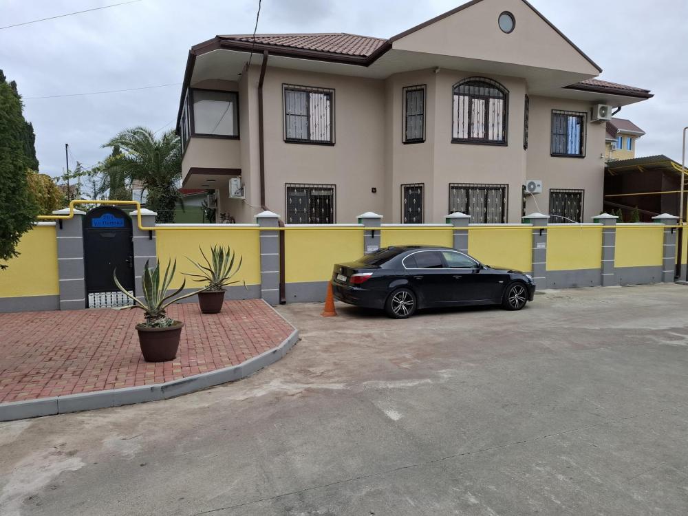 Трехэтажное здание. Во дворе две беседки и две кухни для приготовления пищи, детская площадка и мангал. В шаговой доступности столовые и магазины. Море через дорогу.