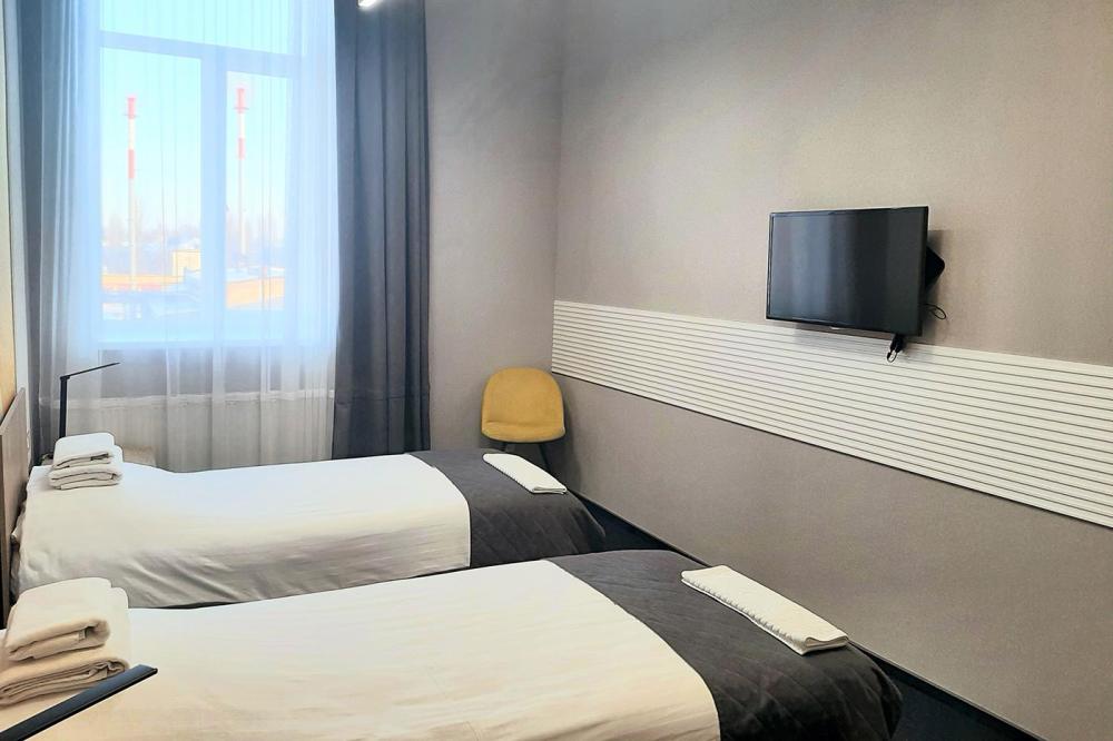 В двухместном стандартном номере, площадь которого составляет 28 кв.м будет приятно и уютно находиться гостям, прибывшим в деловую поездку или молодым парам. В номере предусмотрены все условия для отдыха. В номере две односпальные кровати, телевизор, телефон, кондиционер, Wi-Fi, проводной интернет, холодильник.