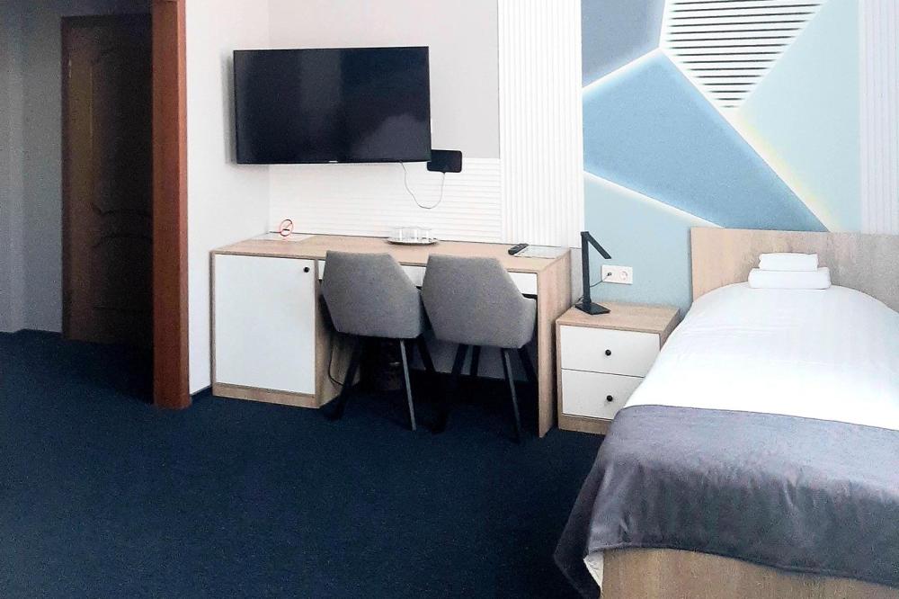 Двухместный номер, площадь которого 26 кв.м, располагается на 3 и 4 этажах с видом на главную площадь города. В номерах имеется все необходимое, что бы сделать Ваше пребывание у нас комфортным. В номере одна двуспальная или две односпальные кровати, телефон, телевизор, кондиционер, Wi-Fi, проводной интернет, холодильник.