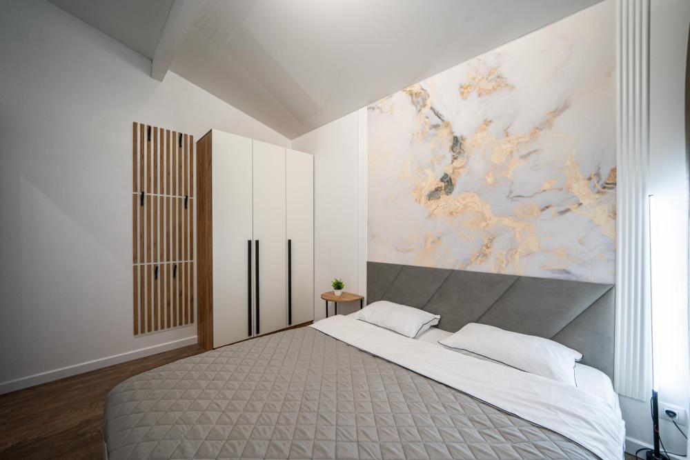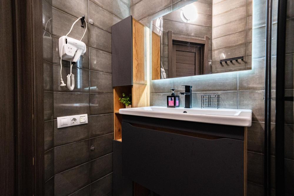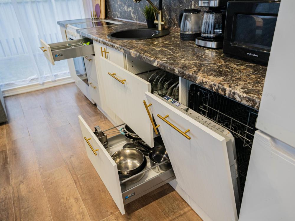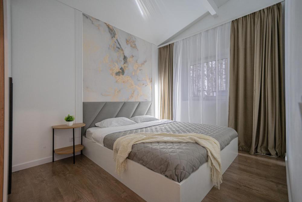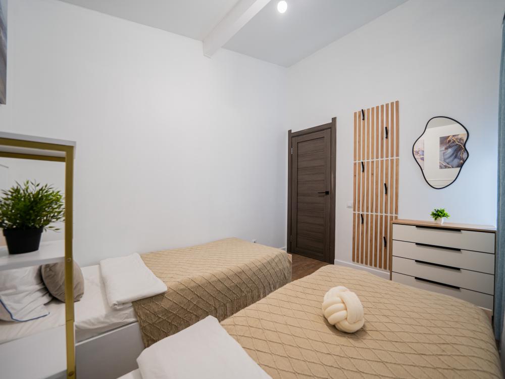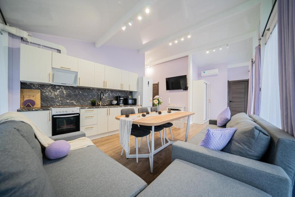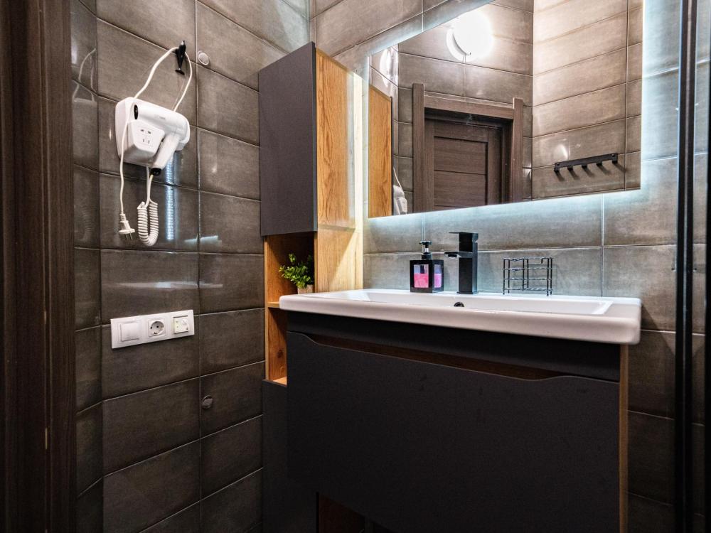 На участке расположены: одноэтажный дом с панорамными окнами 70 кв. м., парковка на 3 автомобиля с видеонаблюдением, зеленая лужайка перед домом, мангальная зона с садовой мебелью. Большая кухня-гостиная 30 м2 с электрокамином, а также высокими потолками, создающими неповторимую сказочную атмосферу уюта. Оснащение кухни: микроволновая печь, электроплита с духовым шкафом и вытяжкой, посудомоечная машина, чайник, холодильник, капельная кофемашина, полный набор посуды — тарелки, стаканы, бокалы, кастрюли, сковородки, разделочные доски и столовые приборы; таблетки для посудомоечной машины и стиральный порошок, а также чистящие и моющие средства предоставляются бесплатно. В кухне-гостиной имеется 2 раздвижных больших дивана Икеа. Телевизор со спутниковой антенной и множеством каналов, а также возможностью подключения своей караоке-системы. Кондиционер на случай жаркой погоды. Раздельный санузел с полотенцами, средствами гигиены (мыло, гель для душа), феном, теплым полом, бойлером на 100 литров и стиральной машинкой. Душевая кабина с современной душевой системой и тропическим душем. Две спальни с двуспальными кроватями King size, размером 180*200, матрасами Аскона, чистым постельным бельем и шкафами для одежды. Одна спальня с двумя односпальными кроватями, размером 90*200 и комодом. Также в доме: безлимитный WI-FI, детская кроватка предоставляется по запросу, настольные игры для и детские игрушки с книгами. Ватрушка и снегокат в отдельном гостевом хоз.блоке.