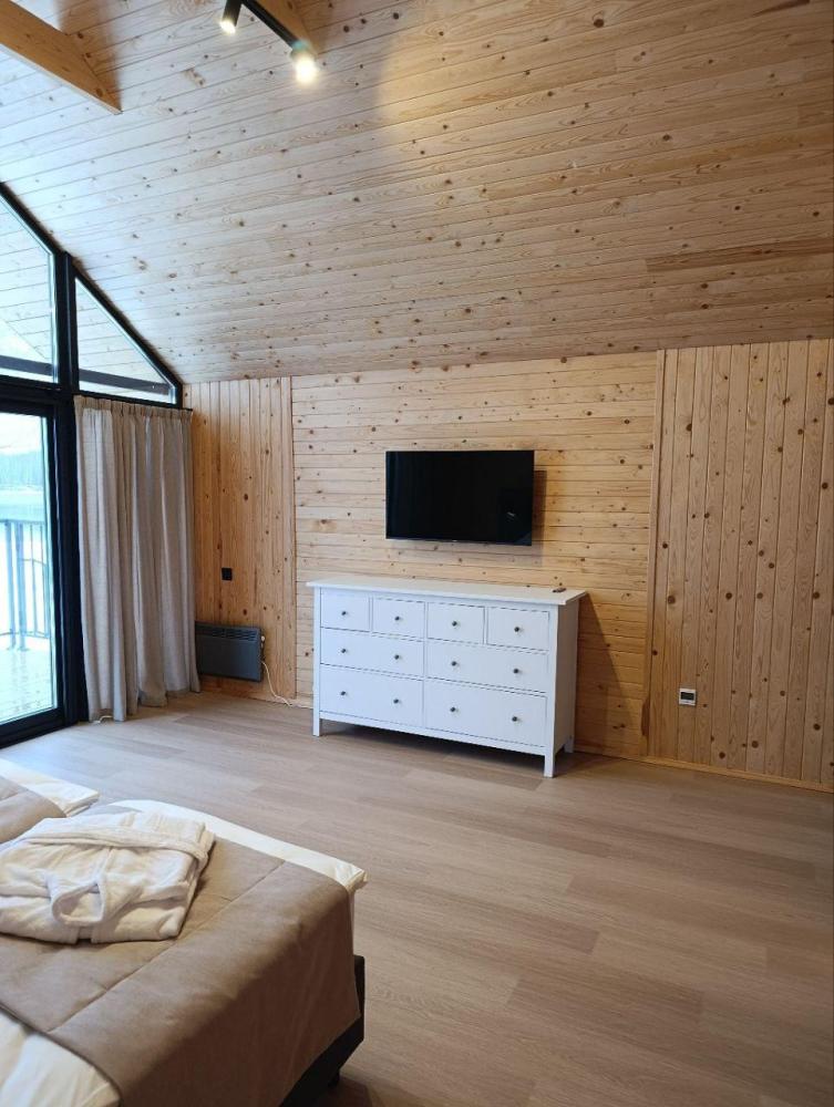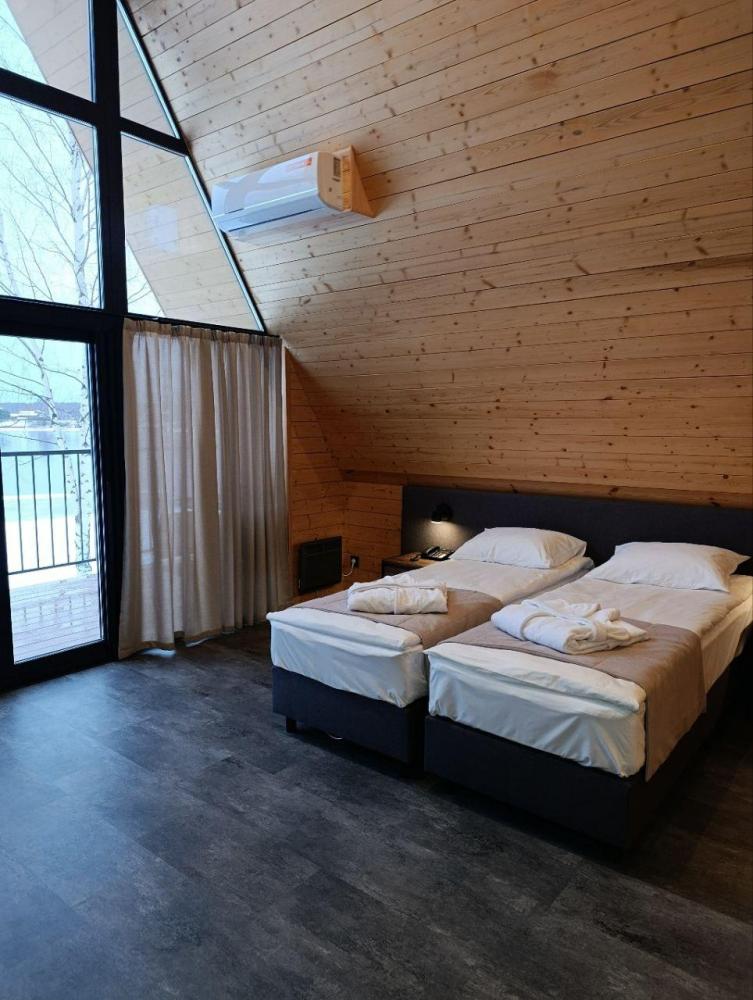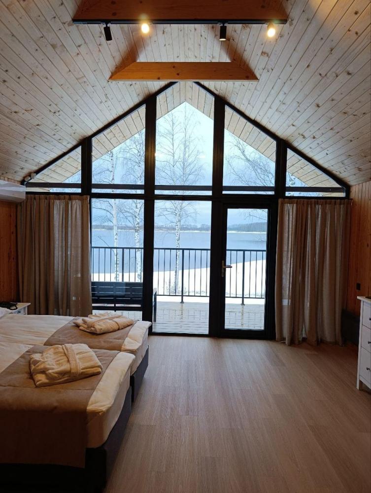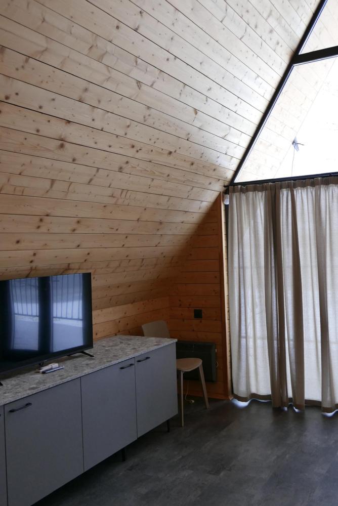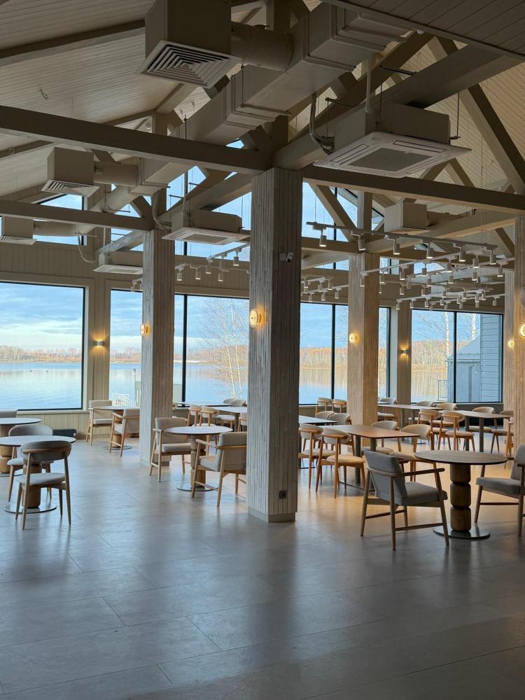 Современный А-фрейм с панорамными окнами и открытой террасой с видом на Рыбинское водохранилище. В А-фрейме: 6 комфортабельных односпальных кроватей трансформеров, при необходимости объединяются в двуспальные, микроволновая печь, электрический чайник, холодильник, кондиционер, санузел с душем. Гостям предоставляется постельное белье и полотенца.