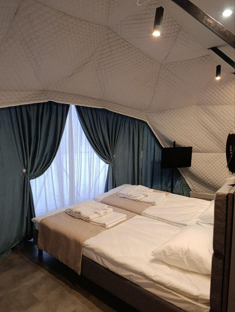 Светлый глэмп, оборудованный всем необходимым для комфортного проживания. В сфере: 4 комфортабельные односпальные кровати трансформеры, при необходимости объединяются в двуспальные, микроволновая печь, электрический чайник, холодильник, кондиционер, санузел с душем. Гостям предоставляется постельное белье и полотенца.