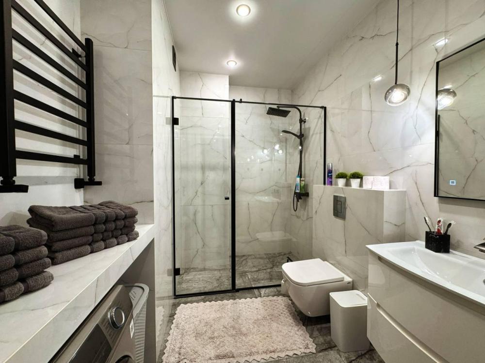 Дизайнерские апартаменты в элитном комплексе в самом центре Бреста. Двор оборудован видеонаблюдением. В квартире есть всё необходимое для комфортного проживания. К услугам гостей чай, кофе, 2 телевизора, PS4, стиральная машина, холодильник, посудомойка, микроволновая печь, необходимая посуда для готовки и приема пищи, кондиционер, утюг, гладильная доска, фен, двуспальная кровать, диван, постельные принадлежности, полотенца, одноразовые наборы для гигиены. В ванной комнате есть фен, жидкое мыло, гель для душа, шампунь, стиральный порошок. В доме автономное отопление.